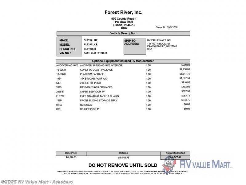 Request More Info on this 2026 Forest River Flagstaff Super Lite 29RLKS Offered for sale by RV Value Mart - Asheboro