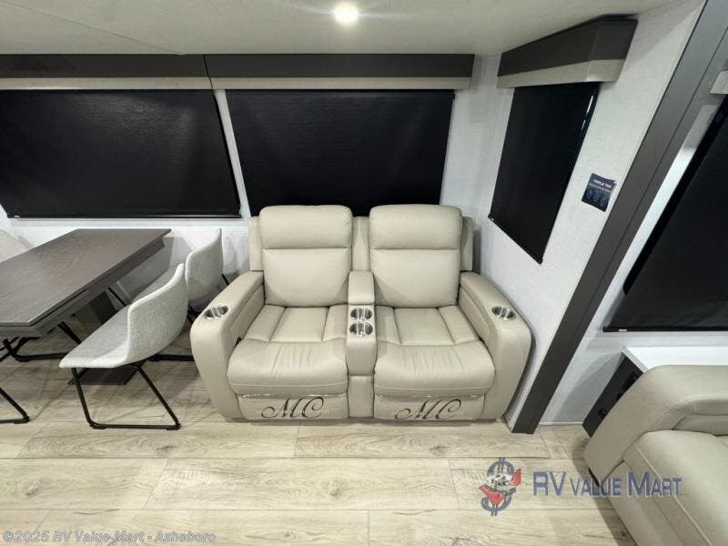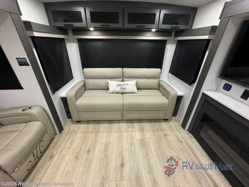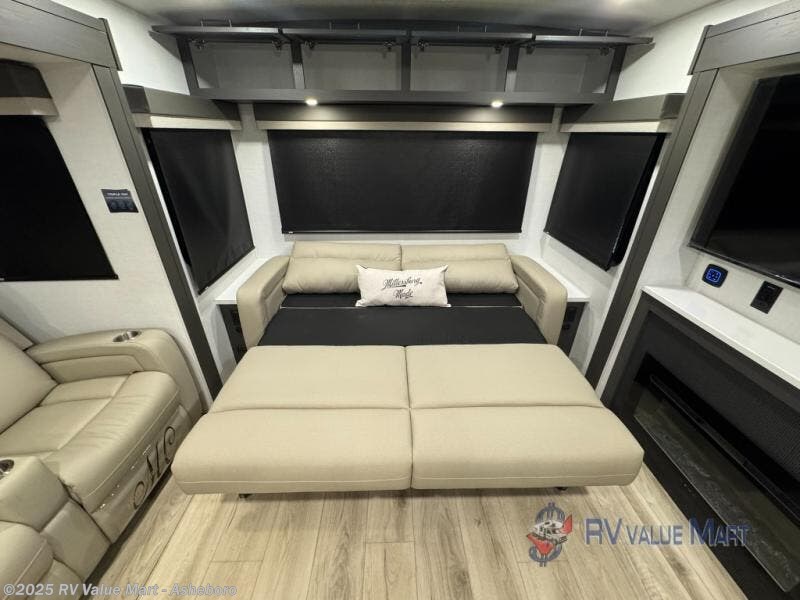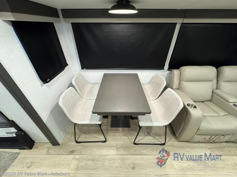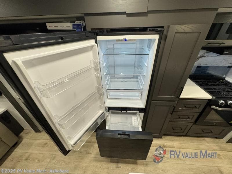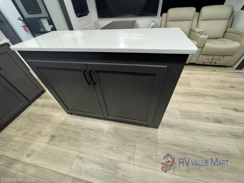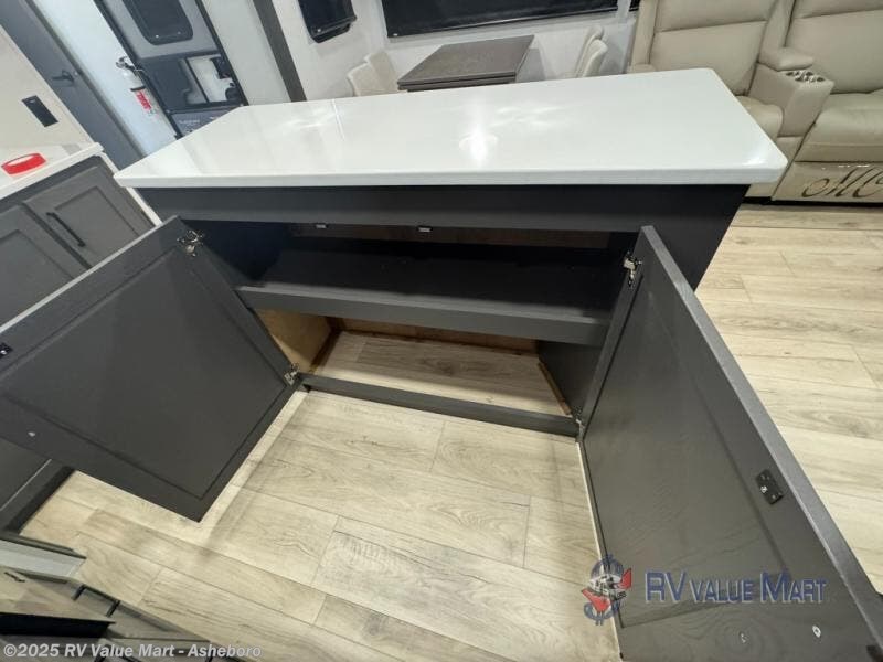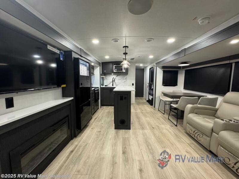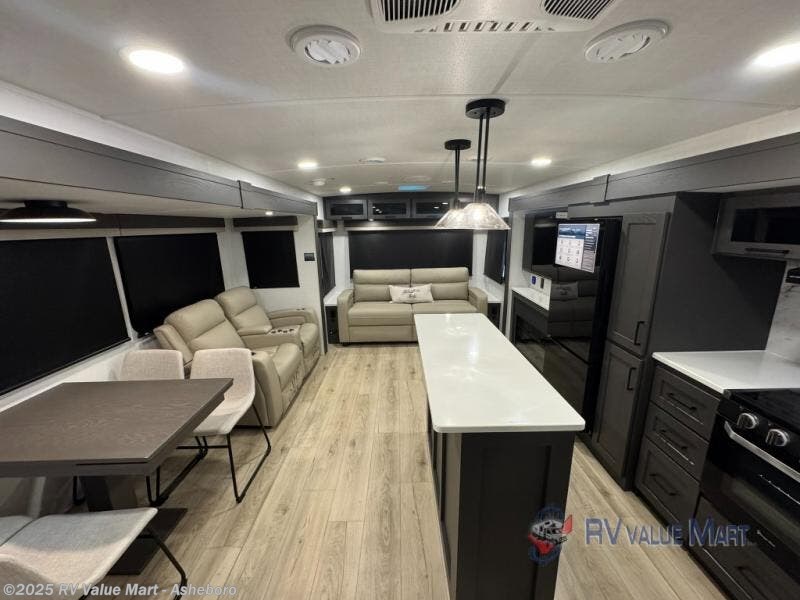 You'll feel right at home when staying in this spacious travel trailer. There are dual opposing slides in the combined kitchen and living area, and the large kitchen island will give the chef of your group more counter space to prep meals. Your crew can dine at the booth dinette, relax on the theater seat, and sleep on the hide-a-bed sofa. You'll find your own space in the front private bedroom that includes a queen bed, triple wardrobes, and a TV option. Head outdoors to find two power awnings, a rear 2" receiver hitch, and a pass-thru storage with an optional steel sliding tray.
