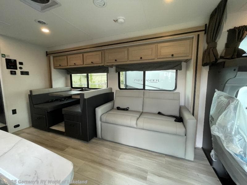 With any Forester LE Class C gas motorhome by Forest River, you will enjoy premier features such as the backup camera/side view cameras with a 3-way monitor the, Winegard Air 360+ digital antenna, and the 15,000 BTU ceiling ducted, ultra quiet roof air with a heat pump when traveling during the warmer months. The exterior includes aluminum framed laminated sidewalls, gel coat exterior fiberglass, a one-piece fiberglass front cap, and slide room toppers. Some of the interior top features are the Maxx Air multi-speed power fan with a cover in the kitchen, the high pressure oxygen infused shower head, and the blackout roller shades for a good night's sleep. Make your selection today!