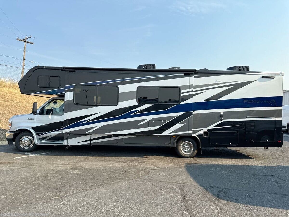 Features Include: 7.3L V8 Gas Engine, Running Boards, Keyless Entry, Overcab Bunk 60x80, Two Cabover Windows, 10-inch Touchscreen, USB and Bluetooth, 3-Way Camera Monitor, Living Spaces, Sofa Sleeper (vbm), Overhead Cabinets, Convertible Dinette, Pantry, Flip-up Countertop, Systems Center, Queen Bed 60x74, Night Stand, 12v Bedroom TV, Linen Closet (vbm), Wardrobe Bathroom, Medicine Cabinet, Motion Sensor Light, Vanity Sink, Linen Storage, Shower Skylight, Toilet, 4.0 Gas Generator, 30-Amp Service Cord, 30k Furnace, 12v Tank Heat Pads, 6-Gal DSI Hot Water, Water Heater Bypass, Black Tank Flush, Aluminum Framed, Composite Substrate, Fiberglass Cap