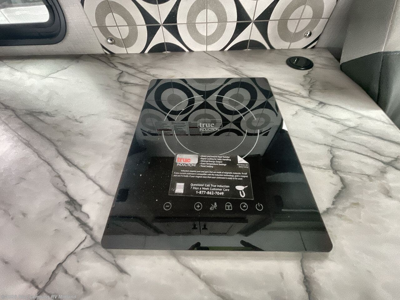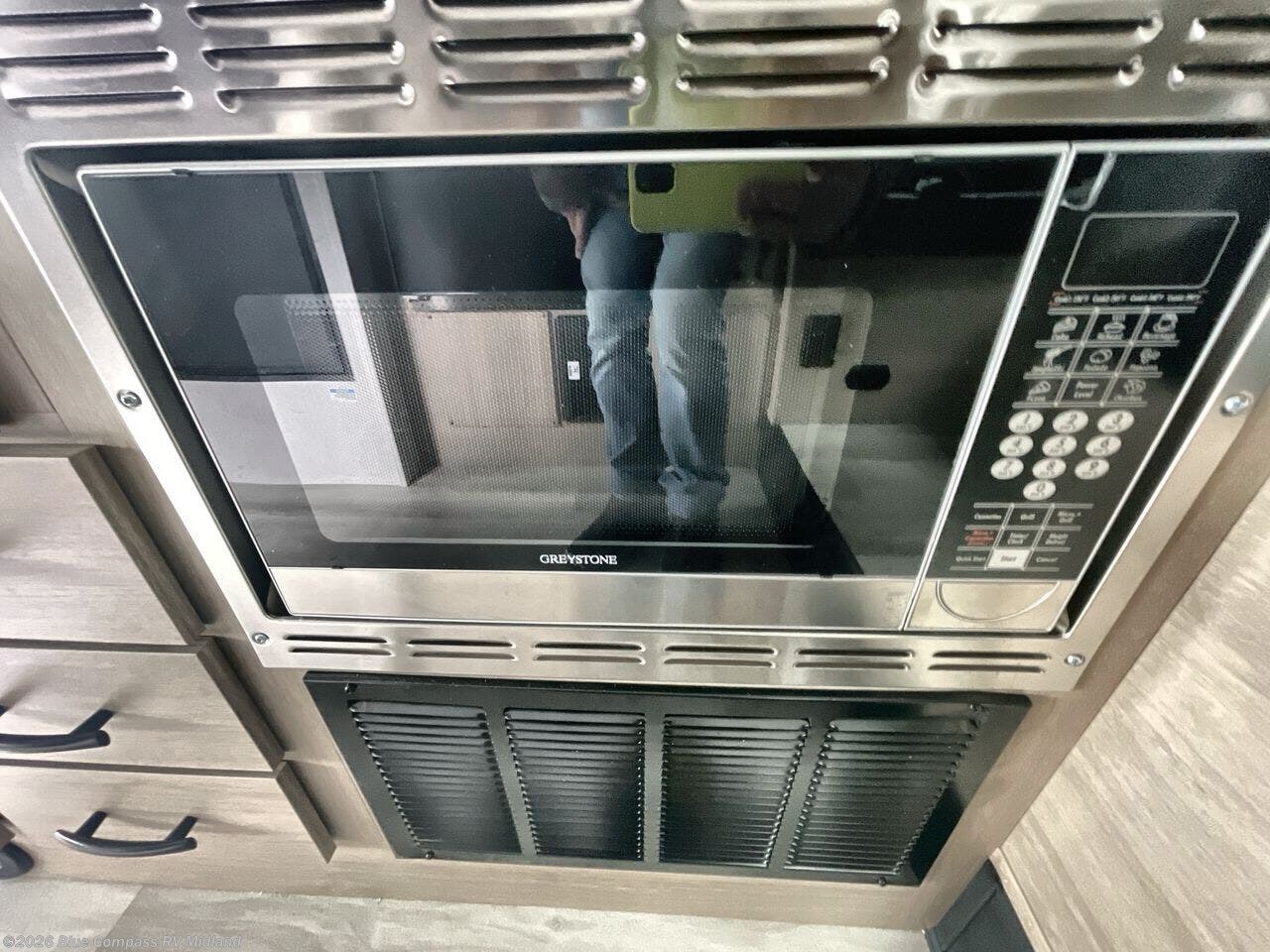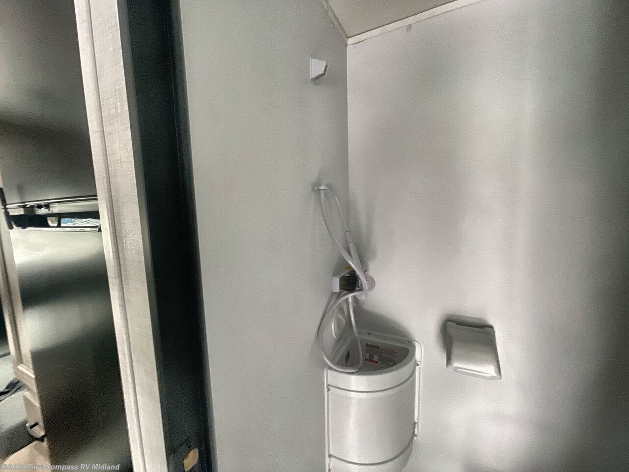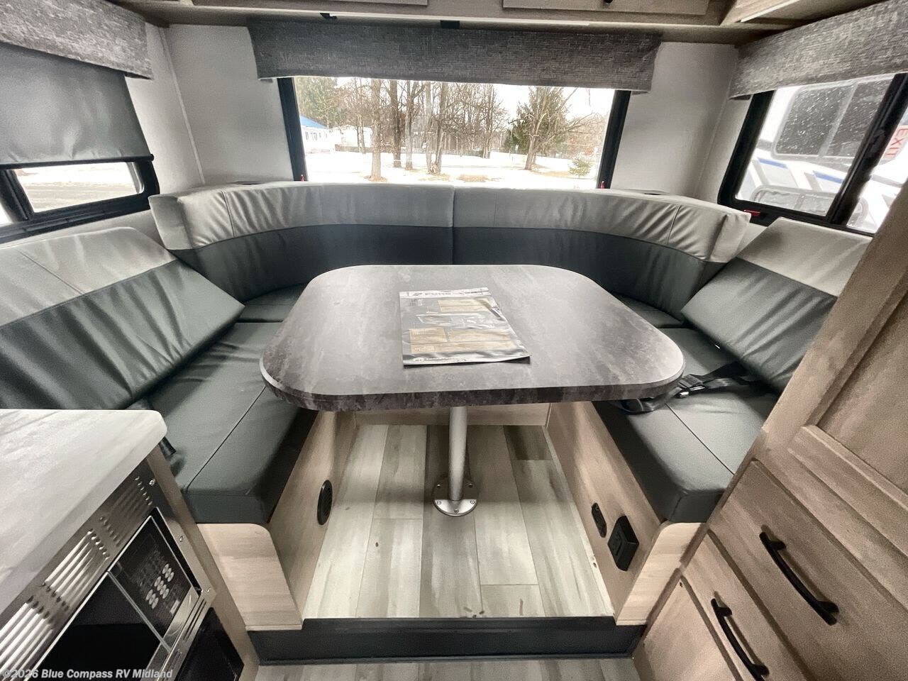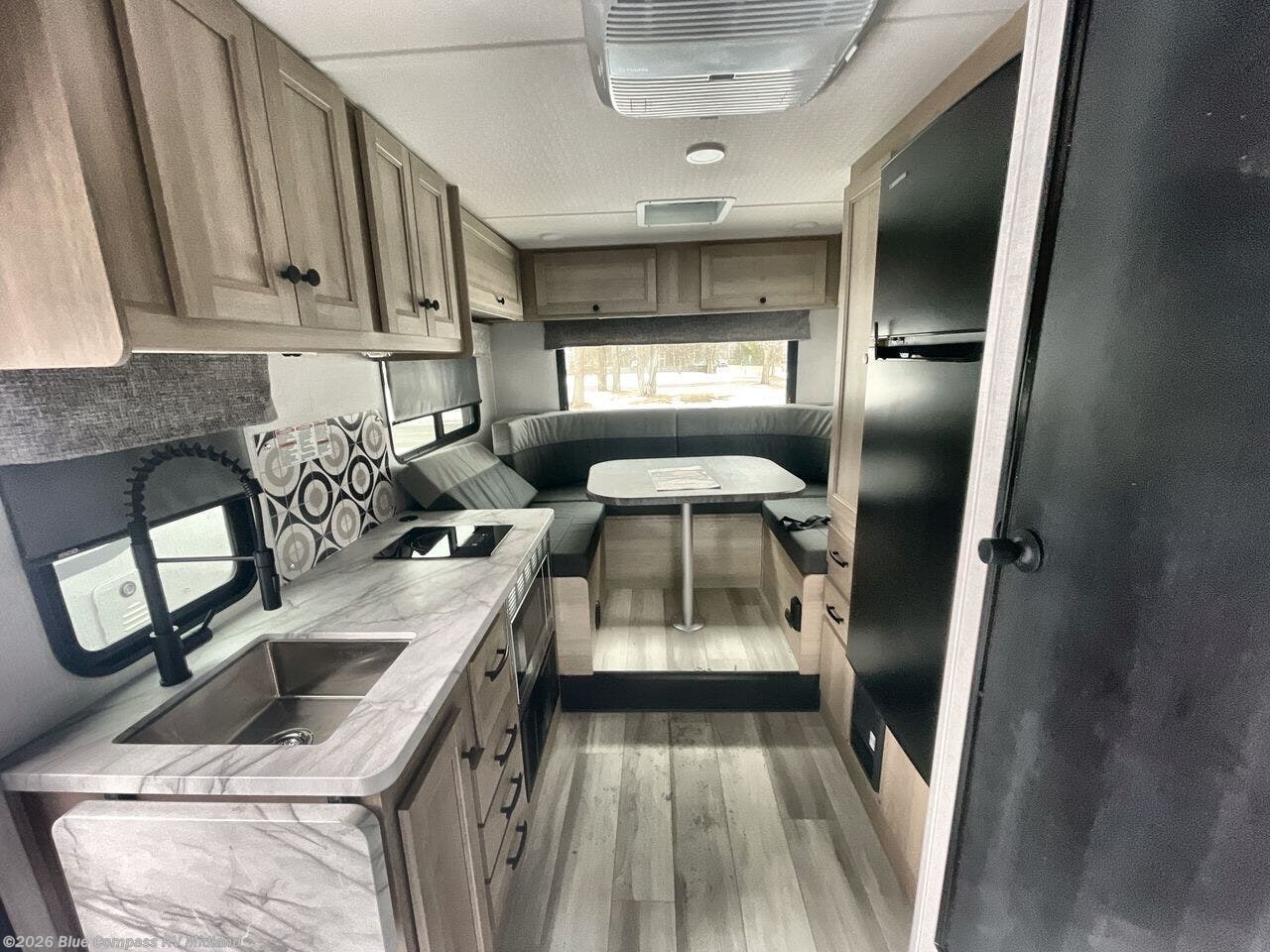 This motorhome is perfect for couples or small families. The bunk over the cab provides a cozy sleeping area, while the U-dinette offers additional sleeping space for guests or family members. The 12V TV is perfect for relaxing in the evenings or enjoying your favorite shows on the go. Plus, the wet bath is a practical and efficient space, making it easy to get ready in the morning or freshen up after a long day. Further, the kitchen is equipped with a 12V fridge, convection microwave/air fryer, and flip-up countertop, providing ample space to prepare meals and snacks. The pantry offers additional storage for your food and cooking essentials. Additionally, overhead cabinets throughout the unit provide plenty of storage for your belongings.