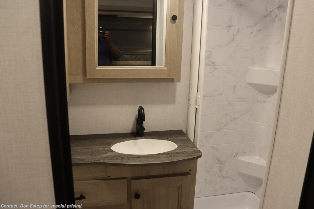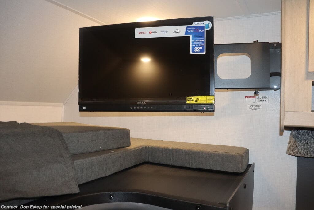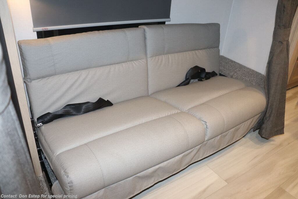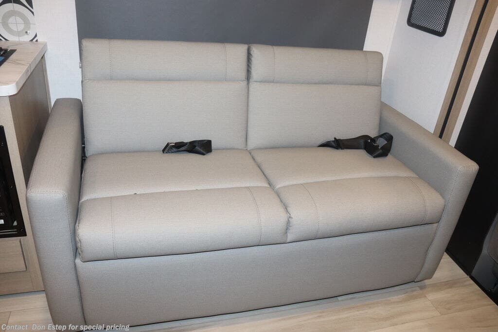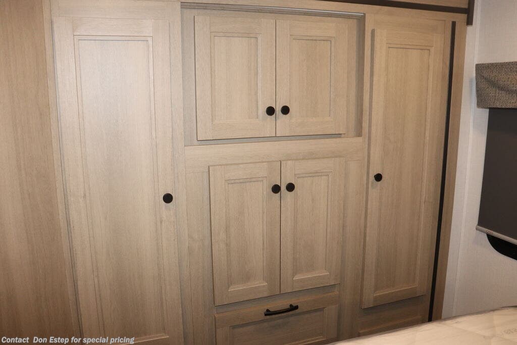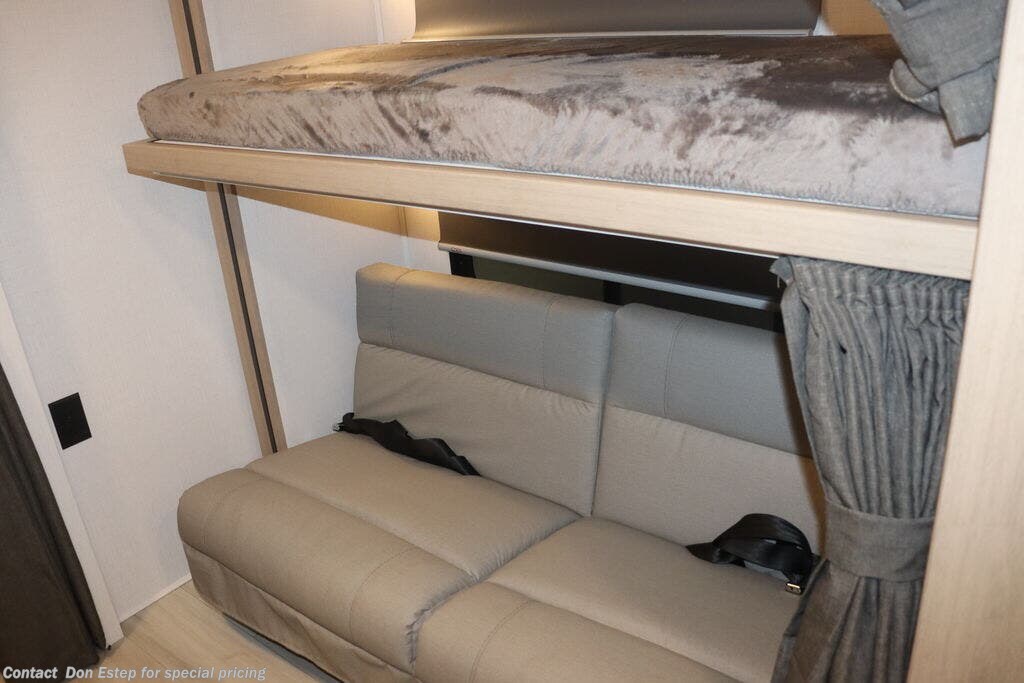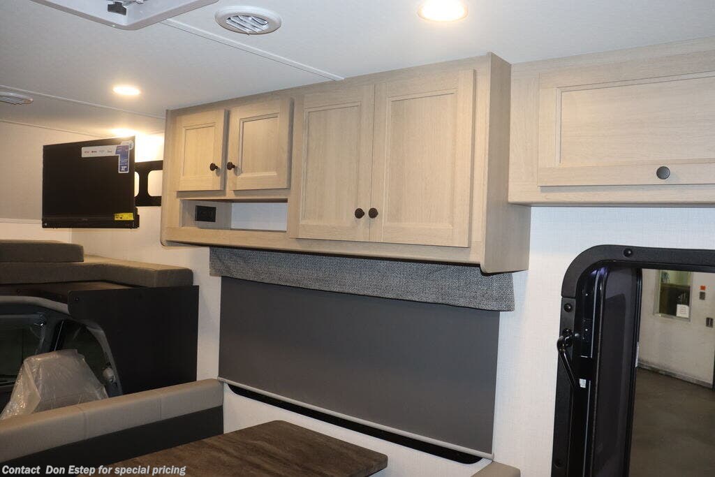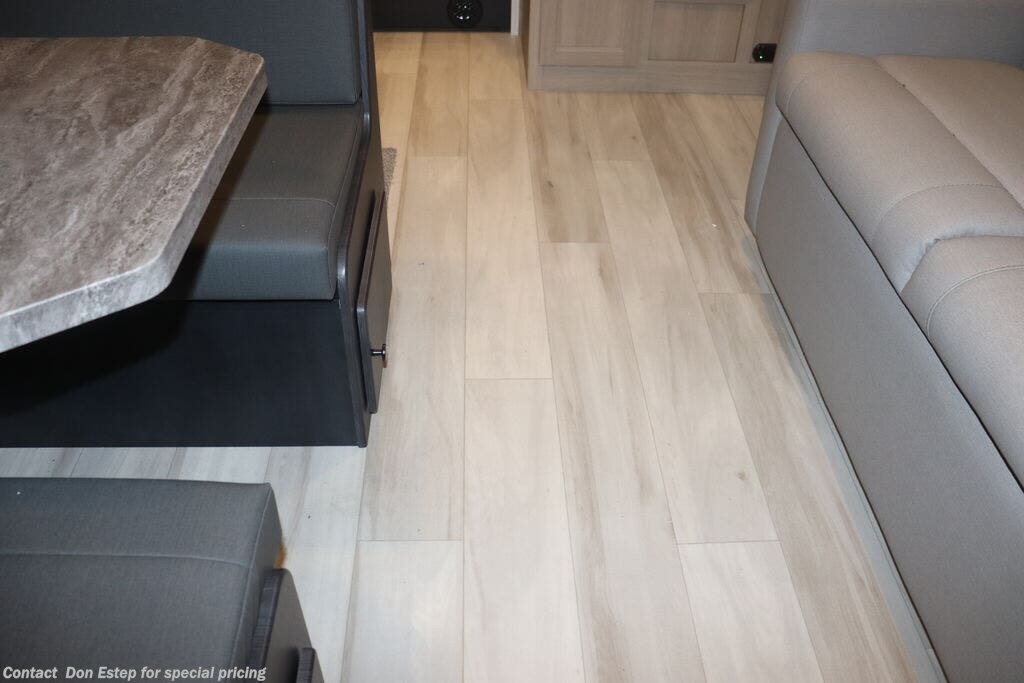 The Forester LE combines affordability with style, offering practical amenities and thoughtful designs for comfortable and enjoyable travel. Its unique split-level layout maximizes living area headroom and includes pass-through storage for every floorplan. Interior options include Dove Grey or Lava fabrics paired with River Teak wood finishes, ensuring a modern, welcoming space for any journey.