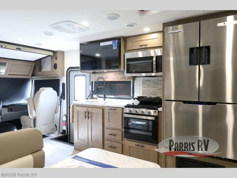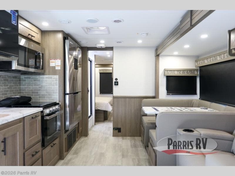 With each FR3 Class A gas motorhome by Forest River, you will find an easy-to-drive coach with a spacious interior allowing you to gather with friends and family with convenience and style found throughout! Each is built with vacuum-bonded construction, a one-piece fiberglass roof with extended rain spouts, a steel firewall and A-pillar extension, Bi-LED headlamps and lower LED fog lights, and grey Rotocast storage boxes with drains. Inside, you will enjoy black hardware, appliances, plumbing fixtures, and a glass shower door frame. You will also find a stainless steel kitchen sink with a bamboo cutting board and roll-up dryer, heavy-duty full-extension ball bearing drawer guides, dual-access dinette storage with doors, and nightstands with charging stations to keep your cellphones ready for whatever is next. Make your selection today!