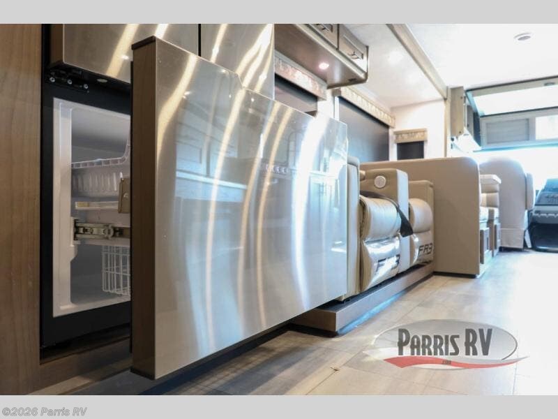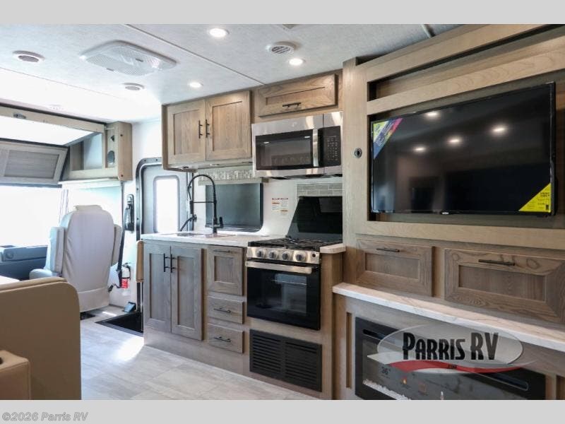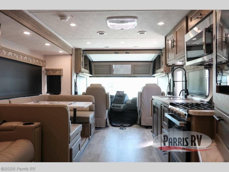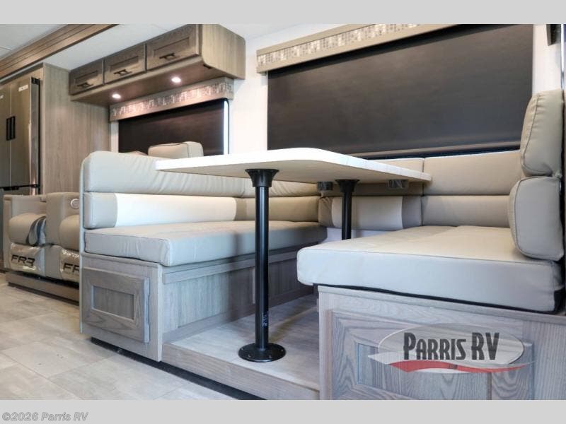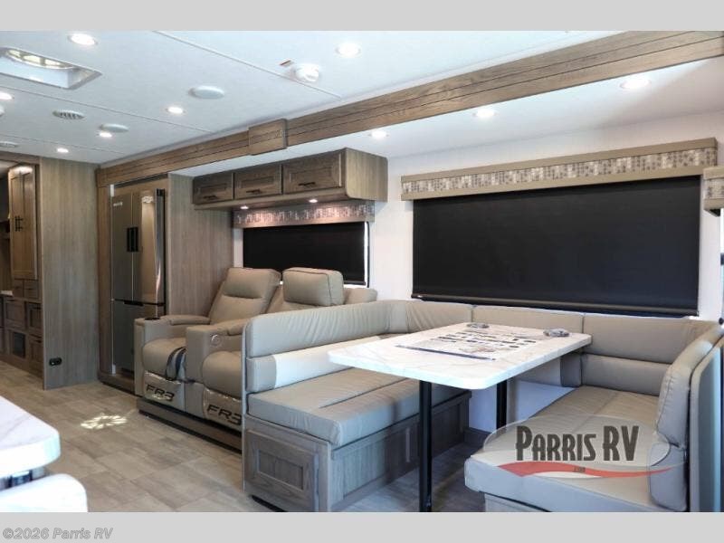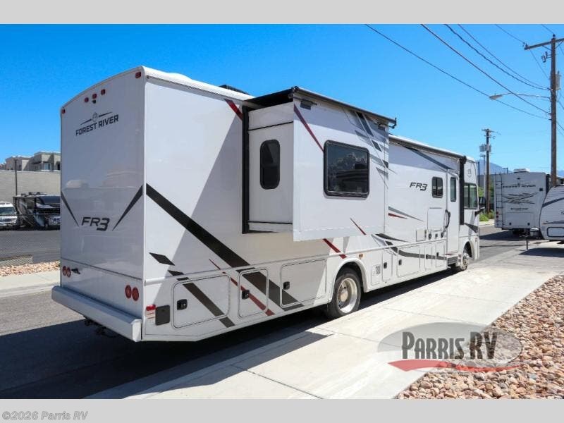 With each FR3 Class A gas motorhome by Forest River, you will find an easy-to-drive coach with a spacious interior allowing you to gather with friends and family with convenience and style found throughout! Each is built with vacuum-bonded construction, a one-piece fiberglass roof with extended rain spouts, a steel firewall and A-pillar extension, Bi-LED headlamps and lower LED fog lights, and grey Rotocast storage boxes with drains. Inside, you will enjoy black hardware, appliances, plumbing fixtures, and a glass shower door frame. You will also find a stainless steel kitchen sink with a bamboo cutting board and roll-up dryer, heavy-duty full-extension ball bearing drawer guides, dual-access dinette storage with doors, and nightstands with charging stations to keep your cellphones ready for whatever is next. Make your selection today!
