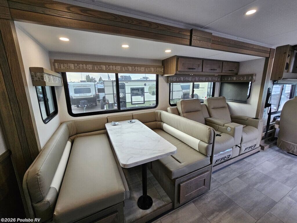 The 2026 Forest River FR3 30DS represents an exceptional blend of style, comfort, and functionality for those passionate about the RV lifestyle. This Class A motorhome measures nearly 32 feet in length and is powered by gas, offering smooth travel combined with efficient performance. Designed to comfortably sleep up to seven individuals, this new model is an excellent choice for families or groups seeking adventure on the road without sacrificing the comforts of home. Its two thoughtfully designed slide outs create an open and inviting living space, expanding the interior to provide ample room for relaxation and socializing. The living area stands out with versatile seating options and a layout that encourages quality time together, making every journey more enjoyable. An integrated awning allows you to extend the living space outdoors, providing shade and shelter for dining or lounging under the sky. Convenience and stability come together with the motorhome's automatic leveling jacks, making setup quick and effortless wherever your destination lies. The FR3 30DS offers a well-appointed kitchen with modern appliances that simplify meal preparation, adding to the sense of home away from home. With flexible sleeping areas and smart storage solutions, this model supports seamless organization and adaptability for long trips or weekend getaways. Located in Kent, this motorhome is ready to provide freedom, comfort, and reliable performance on your travels. As a family owned, award winning local RV dealer with multiple locations in Sumner, Everett, Kent, and Mt Vernon Washington, Poulsbo RV here to help you find the perfect RV. Stock#: K6229, VIN: 1F66F5DN9S0A03075.