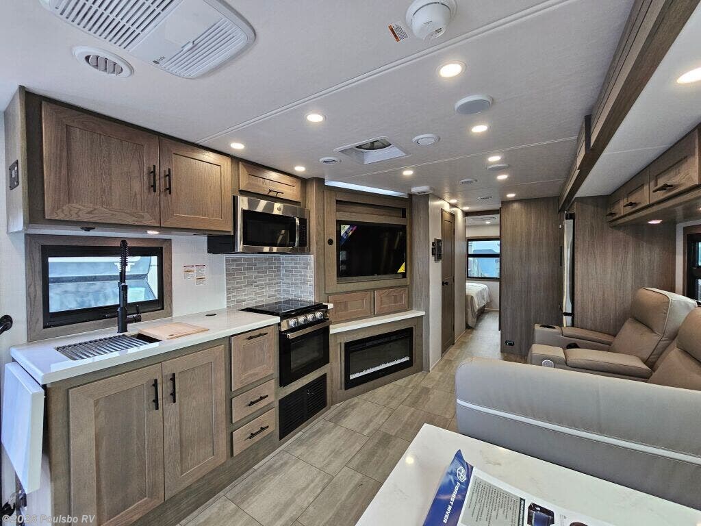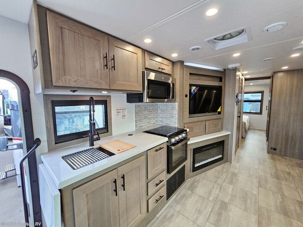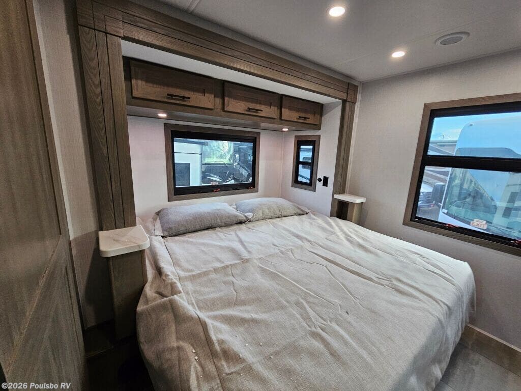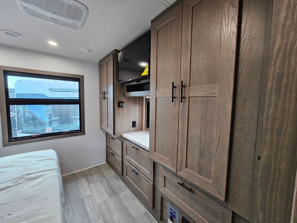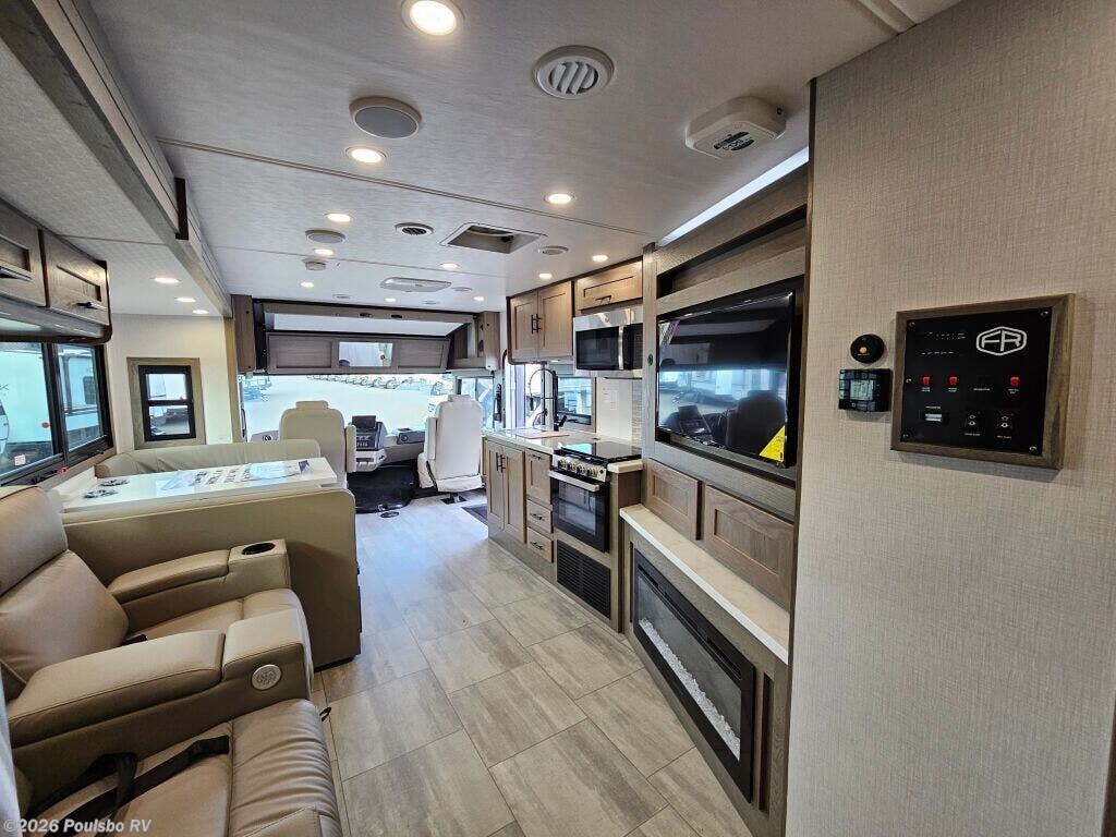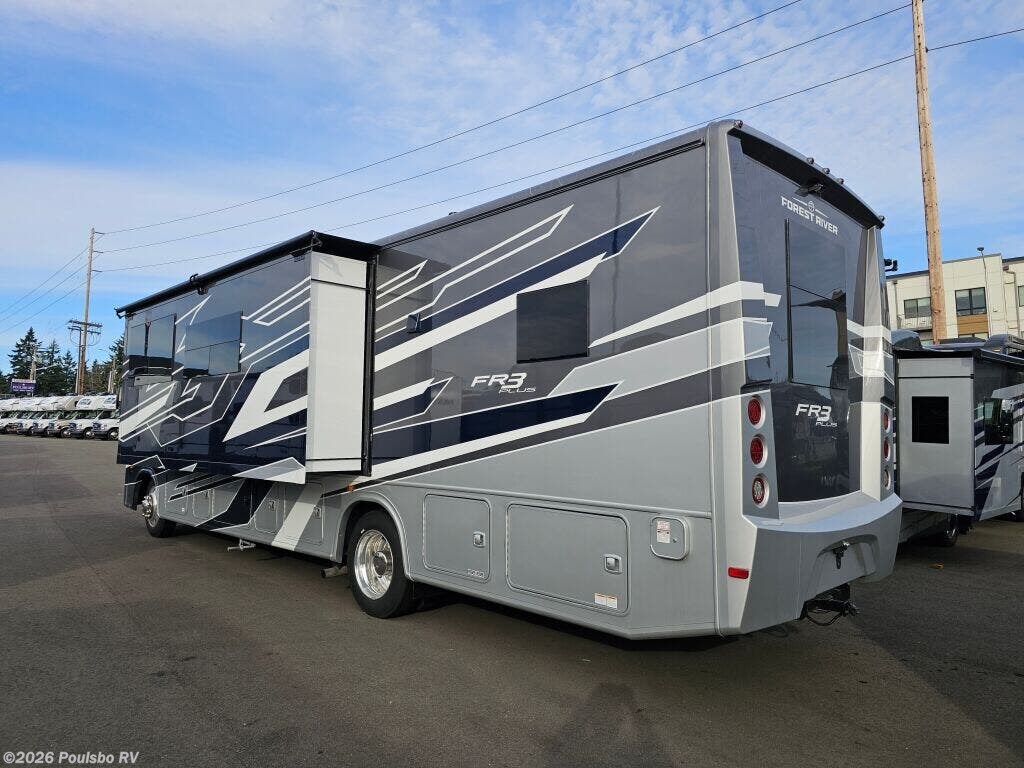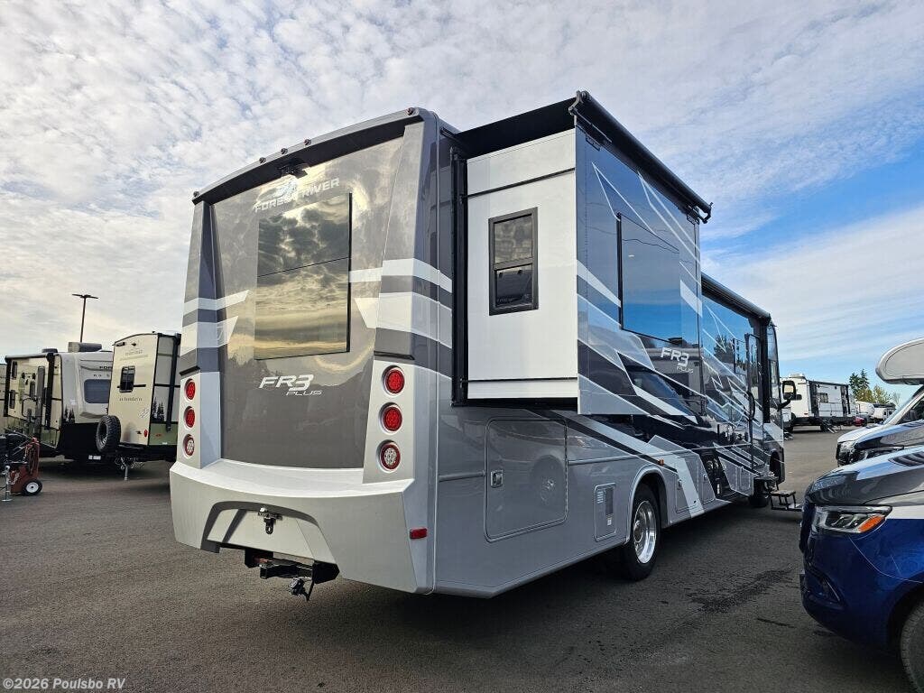 The 2026 Forest River FR3 Plus 33Z is a spacious and versatile Class A gas motorhome, measuring 35.1 feet in length. Designed for those who value comfort and functionality on the road, this new RV offers flexible sleeping accommodations for up to six people, making it ideal for family adventures or group travel. Its clever layout includes two slide outs that significantly expand the living area, providing ample room to relax or entertain. The interior is thoughtfully crafted to enhance your travel experience, featuring a well-appointed kitchen and comfortable seating areas that invite you to unwind after a day of exploration. This motorhome includes a convenient awning that extends your living space outdoors, perfect for enjoying fresh air while protected from the elements. Leveling jacks are also incorporated to ensure stability and ease when parked in various locations, enhancing your comfort during extended stays. The FR3 Plus 33Z is built with reliable gas fuel technology and offers a towing capacity of 5000 pounds, which adds versatility for bringing along additional gear or a trailer. Whether embarking on a cross-country trip or a weekend getaway, this model is carefully engineered to meet the needs of active travelers who seek both space and practicality. Its modern design combines essential conveniences and well-thought-out features that allow you to focus on the joy of RVing. Explore new destinations with confidence and style in this meticulously designed Forest River motorhome. As a family-owned award-winning local RV dealer with multiple locations in Sumner, Everett, Kent, and Mt. Vernon Washington, Poulsbo RV is here to help you find the perfect RV. Stock#: K6225, VIN: 1F66F5DN8S0A02872.