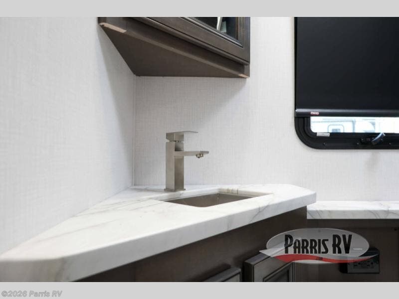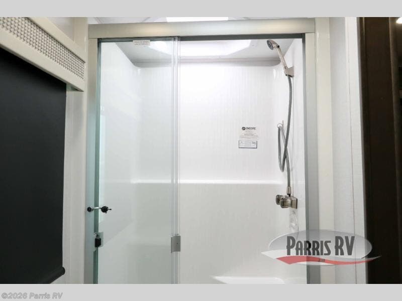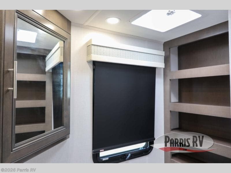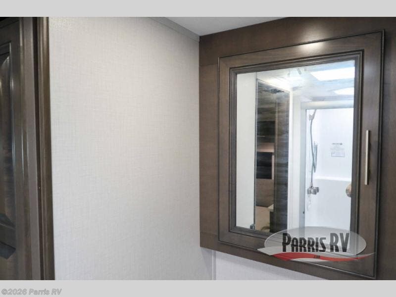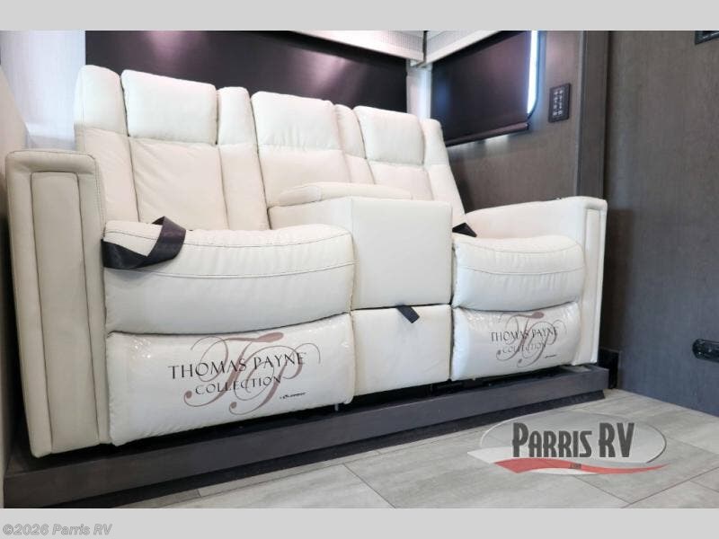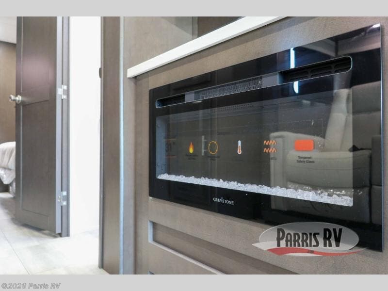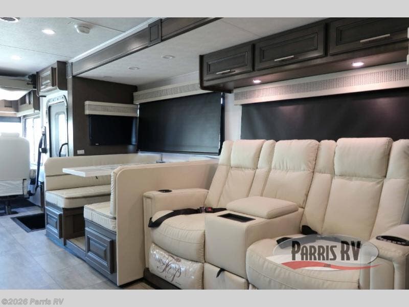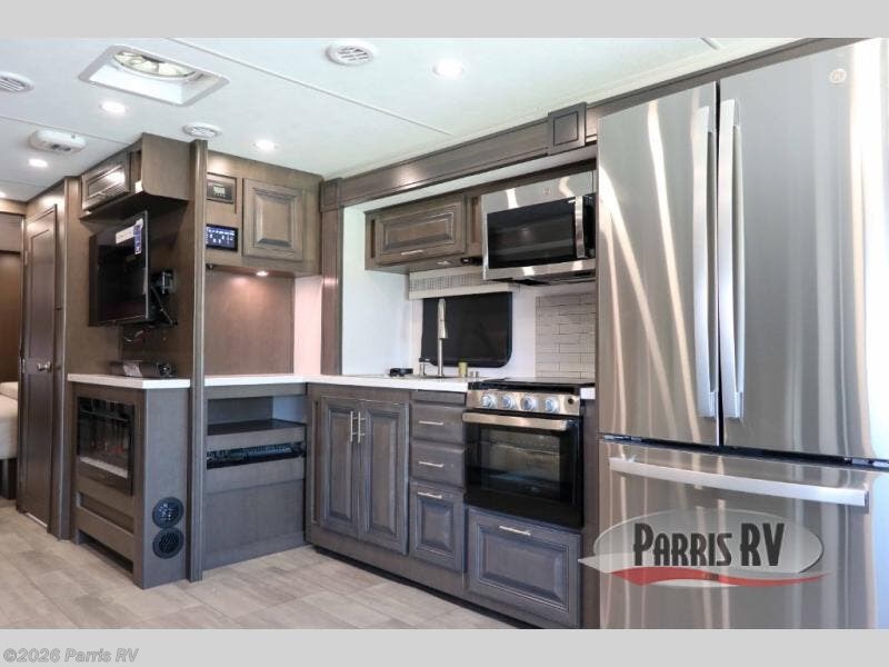 Three slides help to open up this motorhome! The kitchen slide features all of your essentials for cooking delicious meals and you even have a hutch with overhead cabinets to store all of your dishes. The Dream Dinette and Thomas Payne theater seating slide not only open up the living area, but also provide comfortable places to eat meals and unwind in front of the 5,000 BTU fireplace and 40" LED TV after a long day of traveling. The half bathroom is close to the kitchen and living area so you don't have to go far for a quick bathroom break. The master suite will have you feeling right at home with a 72" x 80" king bed slide to lay your head on at night with a dresser across from it that also has a 32" LED TV and wardrobes on either side of it with one of them with an optional washer and dryer. Plus, you even have access to the full rear bathroom which has a shower with a seat to freshen up in each morning!