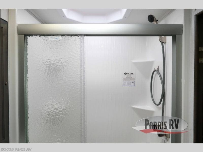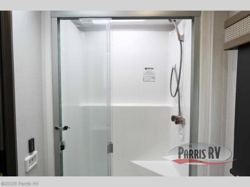 You won't have to search far for comfort in this spacious coach for seven to eight! The little ones will love having bunk beds to sleep on, plus there is a full bath right across the hall for convenience. The master bedroom with a king bed slide out will have you feeling right at home, and the second full bath includes ample counter space to set out your necessities. Everyone can meet in the main living area to relax on the hide-a-bed sofa, or you can choose the optional power theater seats if you don't need more sleeping space. You will surely never get bored with a 40" LED TV in the living room, 32" LED TV in the bedroom, plus a 40" LED TV outdoors with a radio and exterior speakers!