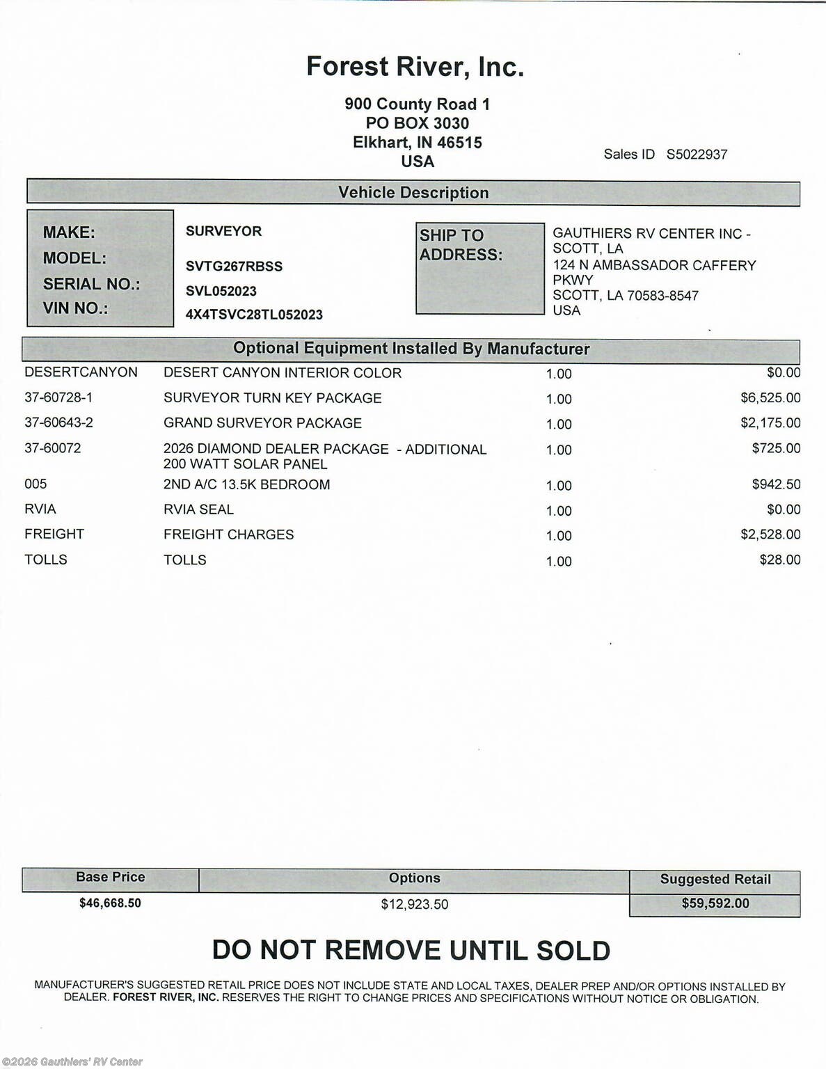 Request More Info on this 2026 Forest River Grand Surveyor 267RBSS Offered for sale by Gauthiers' RV Center