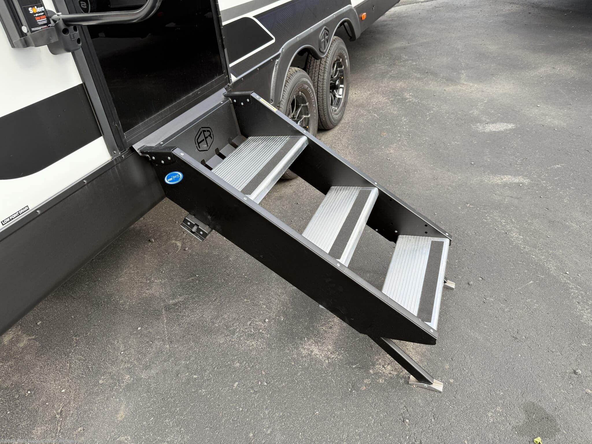Awning, Black Tank Flush, Enclosed Underbelly, Exterior Speakers, External Shower, Fiberglass Sidewalls, Front Overhead Storage, Griddle, Heated Underbelly, Hitch, Outside Kitchen, Pass Thru Storage, Power Awning, Power Hitch Jack, Power Stabilizer Jacks, Roof Vent, Screen Door, Skylight, Slam Latch Baggage Doors, Slideout, Spare Tire Kit, Stabilizer Jacks -