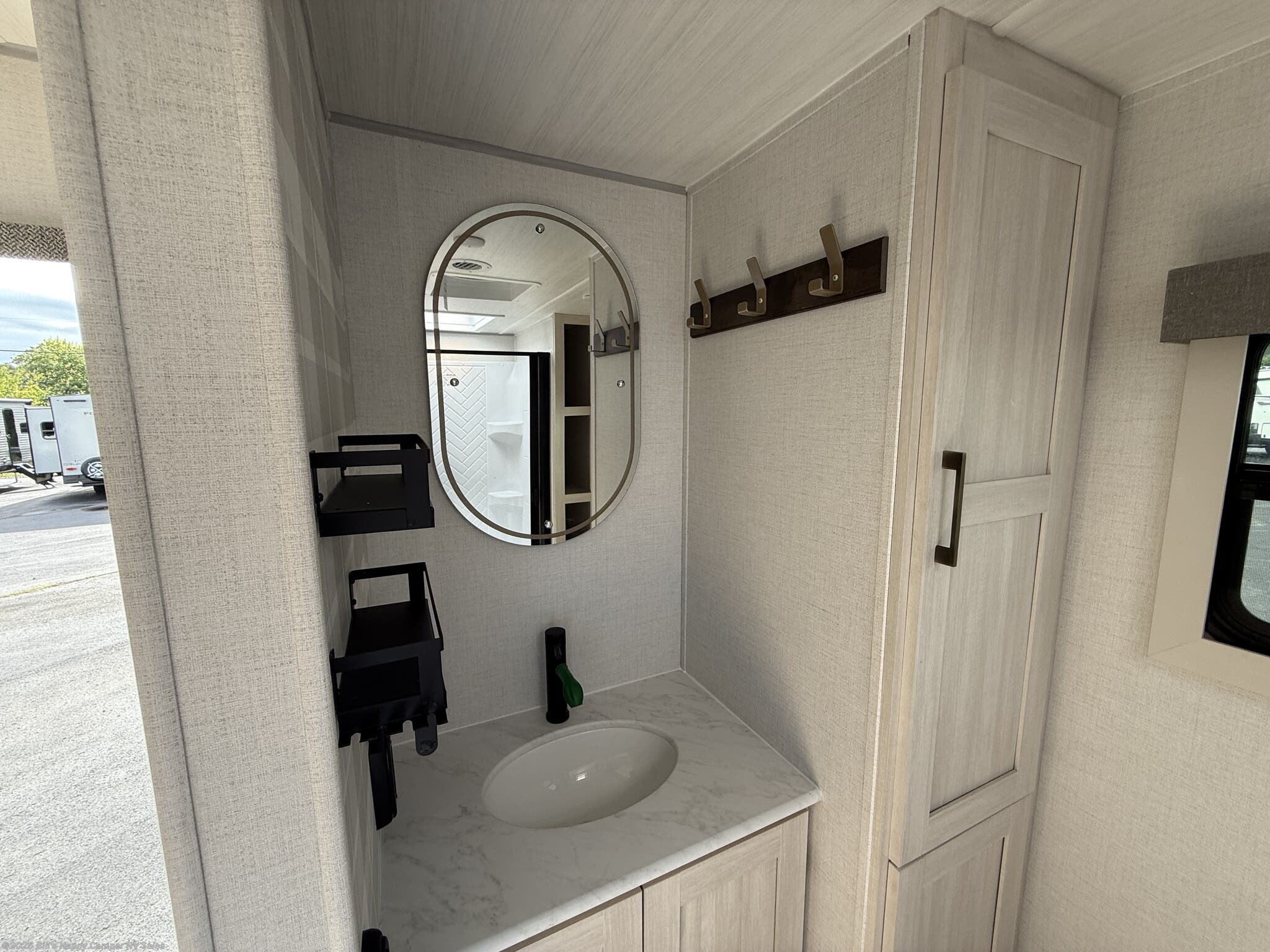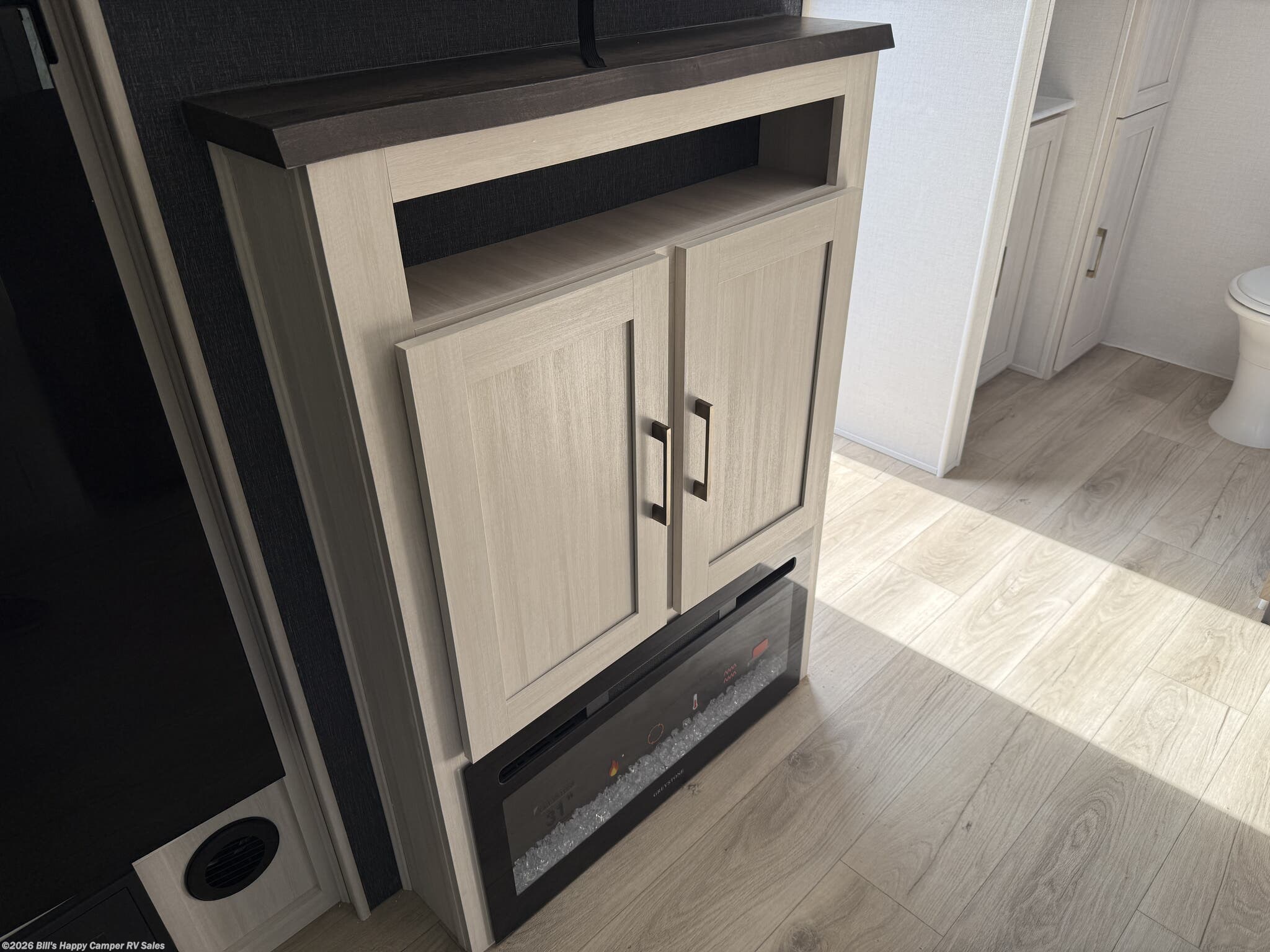 Azdel Composite Panels, Central Vacuum, Fireplace, Kitchen Sink, Medicine Cabinet, Overhead Cabinetry, Pantry, Queen Bed, Queen Mattress, Roof Vents, Shower, Solid Surface Countertops, Theater Seating, Toilet, Vanity, Wardrobe(s) -