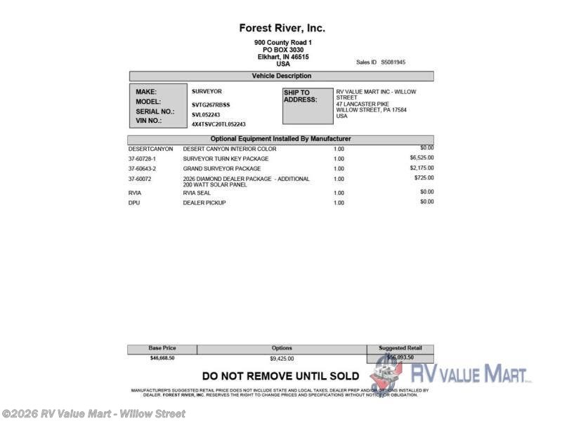 Request More Info on this 2026 Forest River Grand Surveyor 267RBSS Offered for sale by RV Value Mart - Willow Street