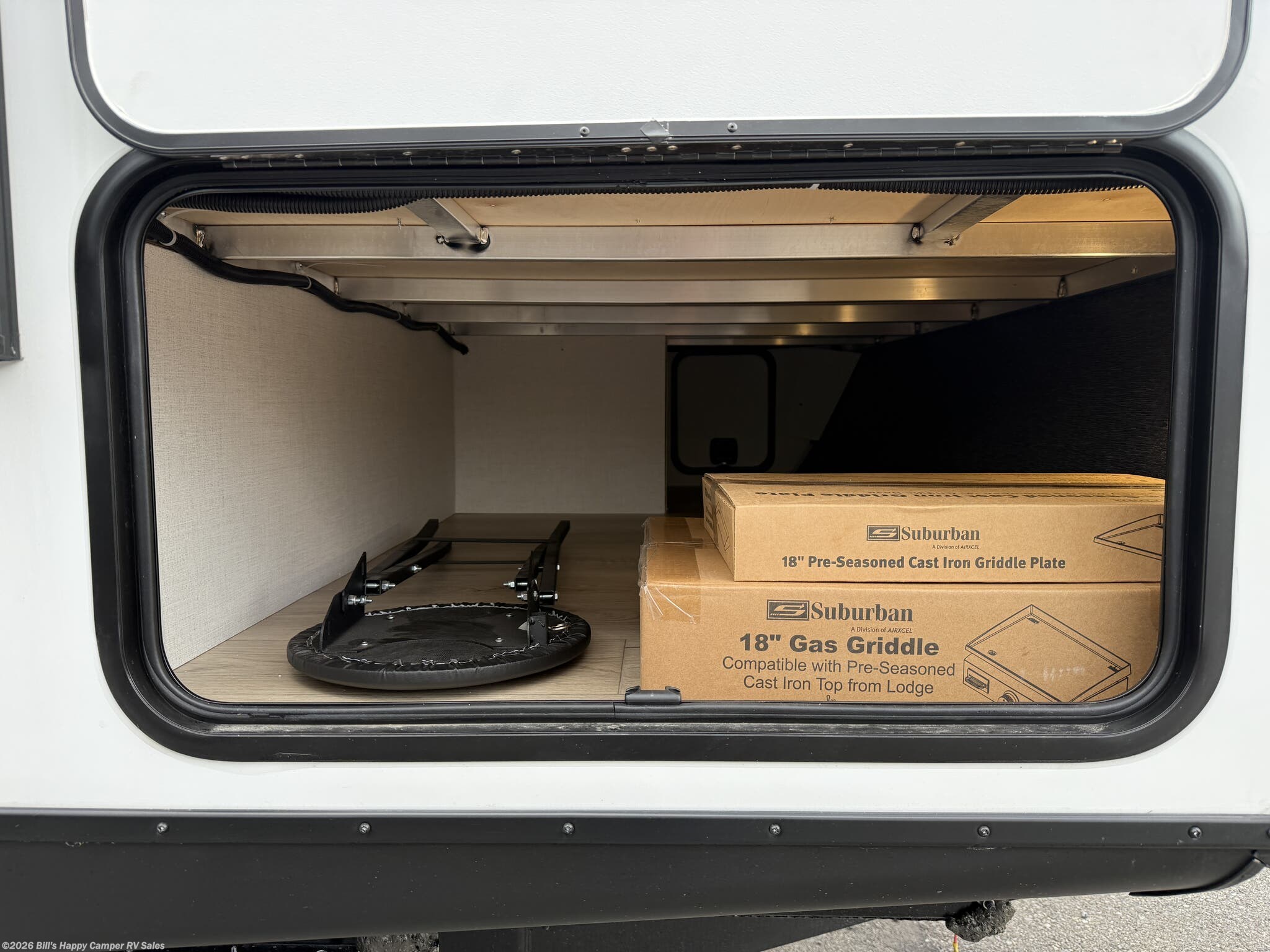 This 2026 Forest River Grand Surveyor 290RLDS is an RV the whole family will love. Be a part of the Forest River family with this 2026 Forest River Grand Surveyor 290RLDS. This rig sleeps 4, so it makes the perfect family RV. Two slides expand this rig into a comfy living space. It doesn’t matter whether you are cooking for one or an entire campground, this kitchen has everything you need with the fridge, oven, stove. Even more RV memories will be made as you spend quality time hanging out on the theater seating. Comfort is important when RVing, and you’ll find just that with the sofa bed. If you like your rig cool in the summer and warm in winter, this heating option can do the trick. If you’re thinking of heading off grid, this rig has a 40 fresh water tank. While the inside of this rig is enough on its own, the outside also features black tank flush, detachable power cord, electric jack, enclosed underbelly, exterior grill, exterior speakers, external shower, front fiberglass cap w/window, front overhead storage, griddle, pass thru storage, power awning, power hitch jack, power stabilizer jacks, roof vent, second roof a/c, skylight, slam latch baggage doors, slideout, spare tire kit and tinted windows. Make sure kids don’t track mud inside with the outside shower. Never run out of room for your belongings thanks to the pass-through storage underneath.