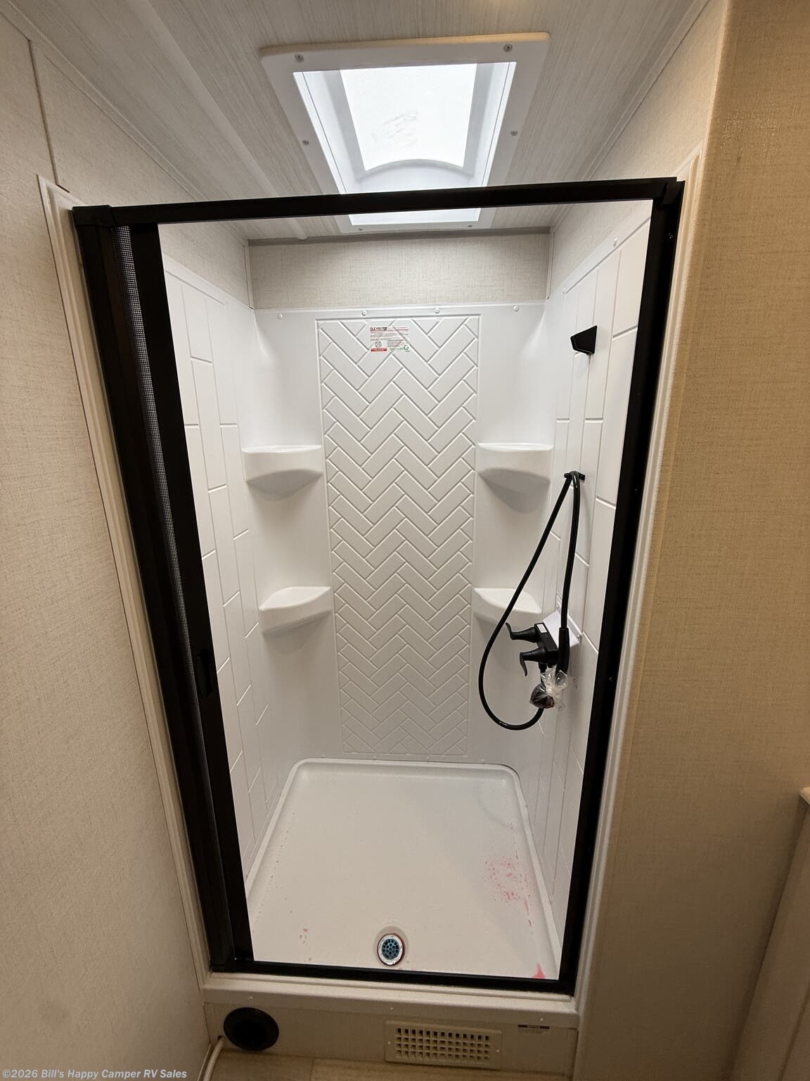 Black Tank Flush, Detachable Power Cord, Electric Jack, Enclosed Underbelly, Exterior Grill, Exterior Speakers, External Shower, Front Fiberglass Cap w/Window, Front Overhead Storage, Griddle, Pass Thru Storage, Power Awning, Power Hitch Jack, Power Stabilizer Jacks, Roof Vent, Second Roof A/C, Skylight, Slam Latch Baggage Doors, Slideout, Spare Tire Kit, Tinted Windows -