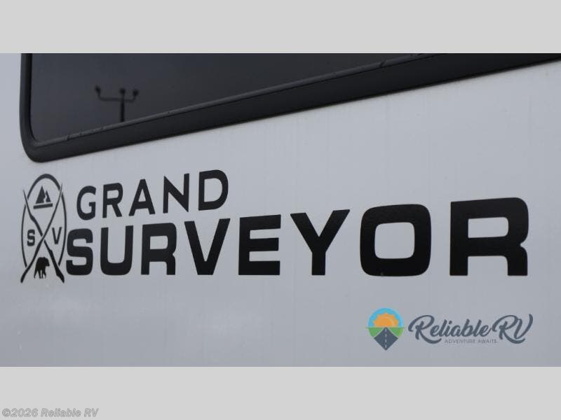 With any Grand Surveyor travel trailer by Forest River you will enjoy turn-key ready-to-go features and quality construction! Each model includes Azdel composite walls and a gel coated fiberglass front cap with an automotive style tinted windshield for a sleek look. There are friction hinge black glass entry door(s), an adjustable platform step with a night light, plus Goodyear tires and a power tongue jack for easy towing. The interior will have you feeling right at home with roller shades, residential faucets, sinks, and bathroom vanity, plus Surf(x) seamless countertops throughout. You can also plan for adventure with a 2" rear accessory and exterior spray port, and there are slam latch exterior baggage doors throughout to keep all your gear secure. Other stand-out features include a central vacuum system, a 200 watt solar panel with a 30 amp controller, a tankless water heater, carpet-free interiors, and the list goes on!