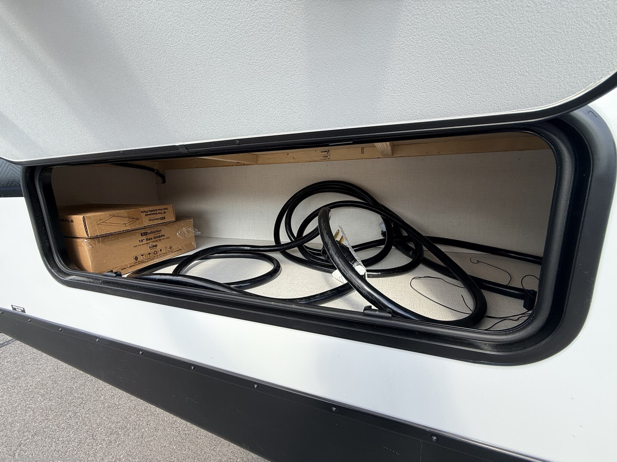 Awning, Black Tank Flush, Enclosed Underbelly, External Shower, Fiberglass Sidewalls, Griddle, Heated Underbelly, Hitch, Outside Kitchen, Power Awning, Power Hitch Jack, Power Stabilizer Jacks, Roof Vent, Screen Door, Second Roof A/C, Skylight, Slam Latch Baggage Doors, Slideout, Spare Tire Kit, Stabilizer Jacks -