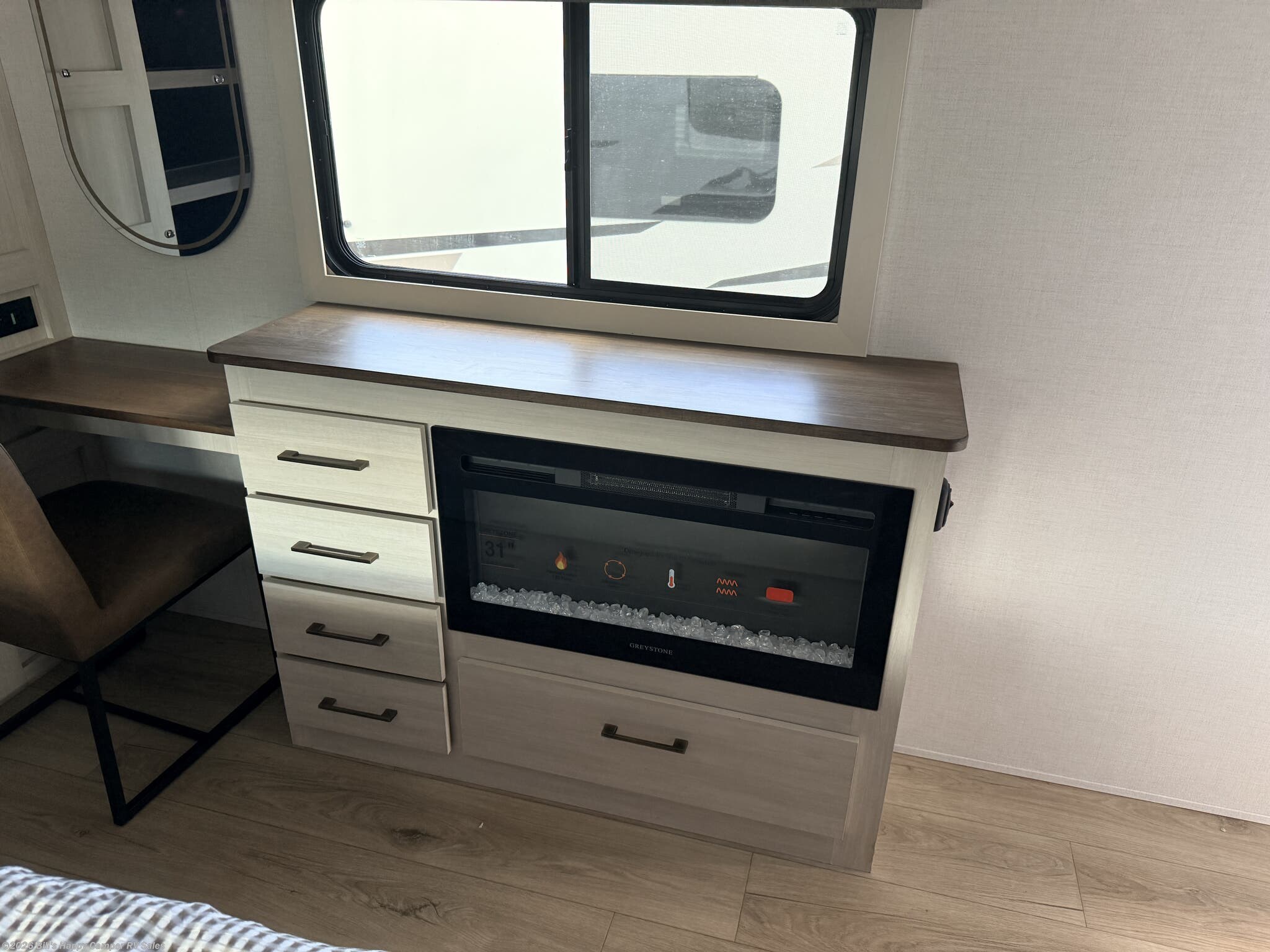 Bluetooth Stereo, Cable Prepped, CO Detector, Fire Extinguisher, LED Lights, LP Detector, Propane, TV, TV Antenna -