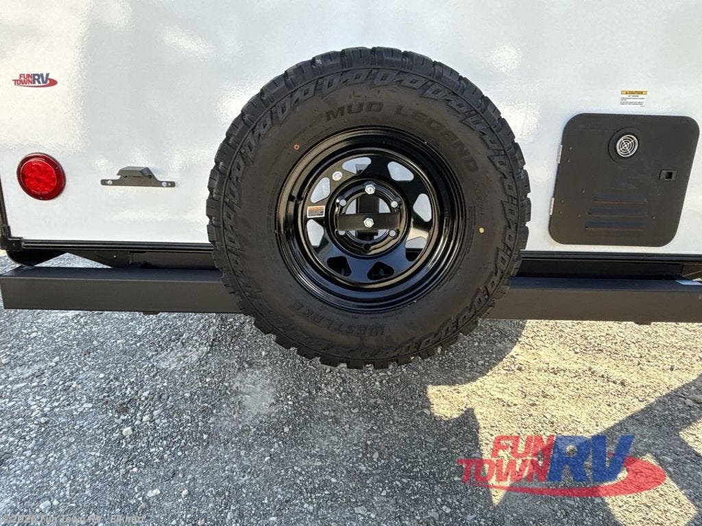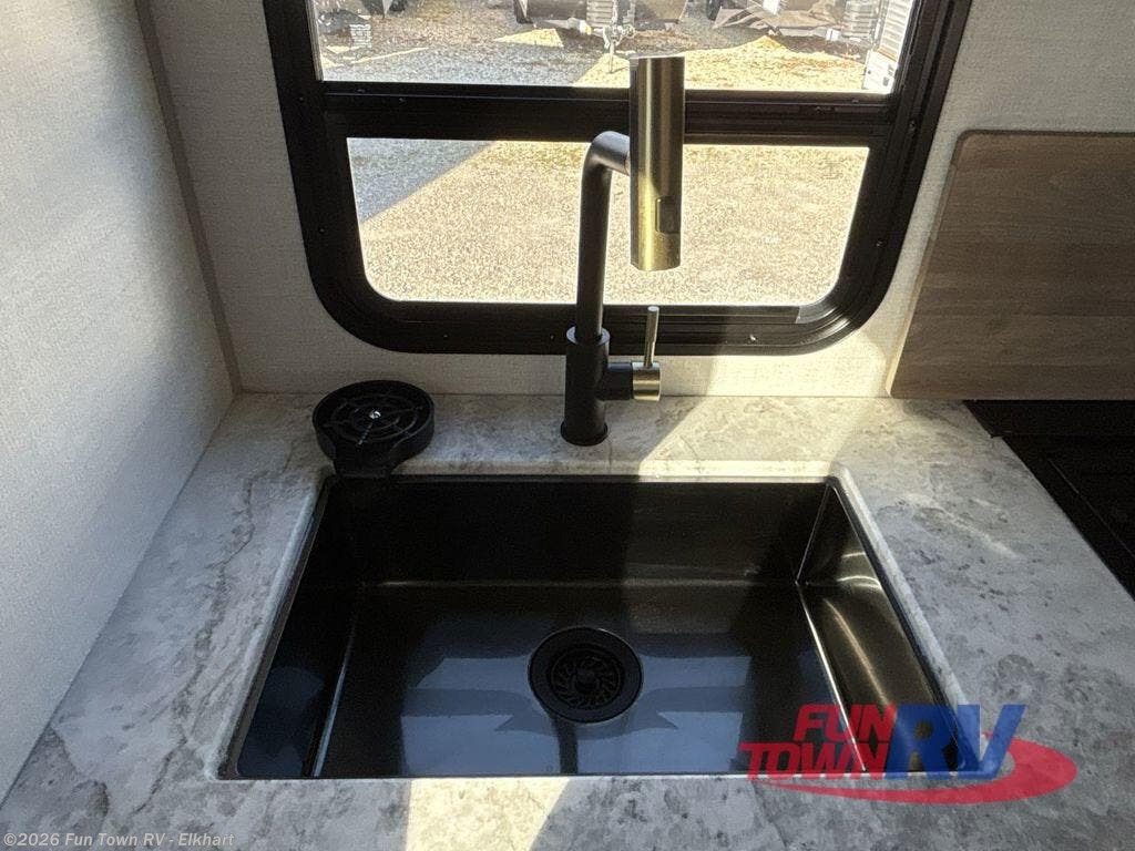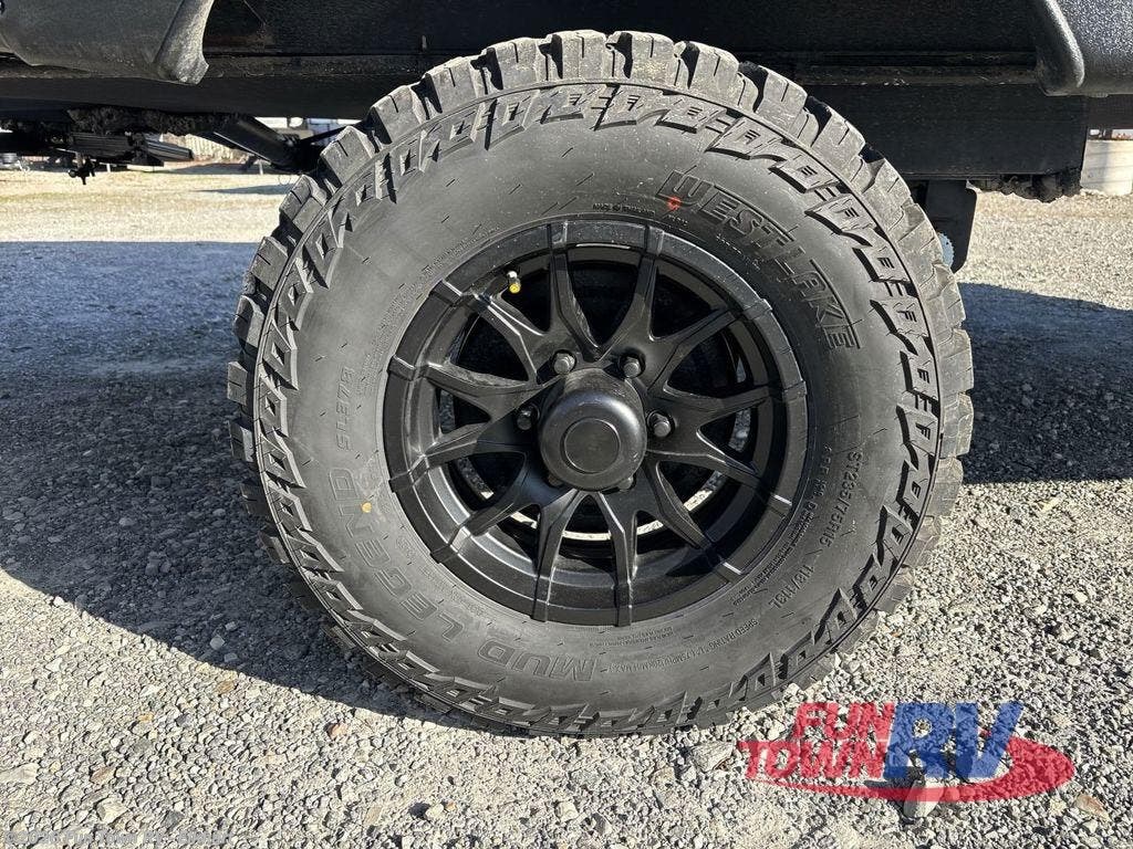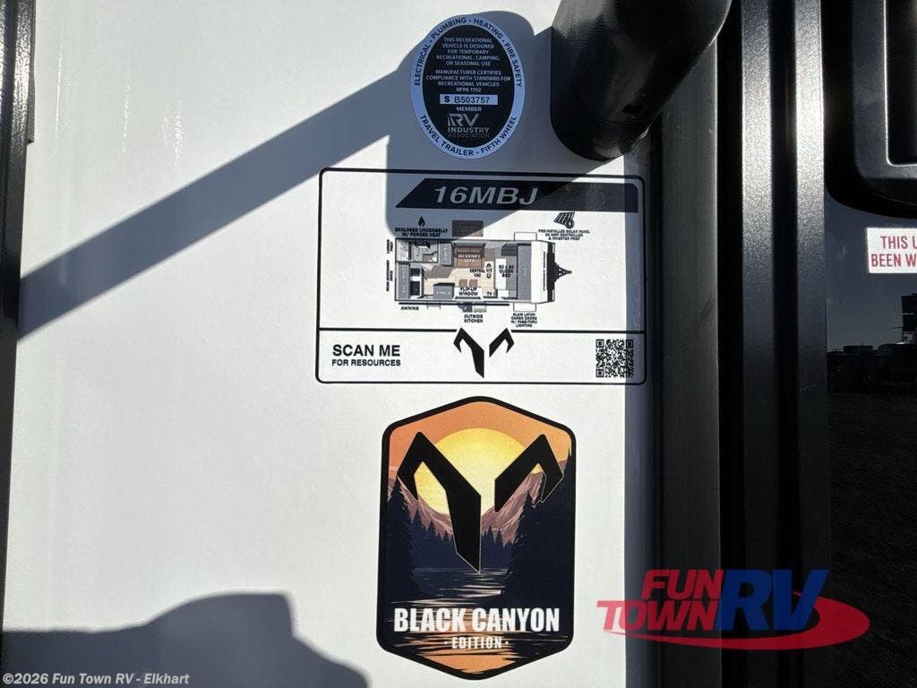 Grab your hiking gear and hit the road in this no-slide travel trailer! The front queen bed will provide a comfortable place to rest your head each night, and the rear corner full bath will let you freshen up without having to use the camp's facilities. The full kitchen includes an air fryer microwave plus a 12V refrigerator to keep food stocked. You'll find comfortable seating space on the jackknife sofa, and you can enjoy your morning coffee at the counter with two stools and a flip-up window! This unit also includes an outside kitchen with a grill to keep the fish fry odors outside! When the optional Black Canyon Beast Mode Package is chosen on this model, you'll find an independent suspension, an additional 200-watt solar panel, totaling 400 watts of solar, a fresh water filter and more!