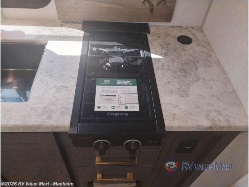 If you're looking for a couple's or solo travel trailer, this is the one! Once you arrive at the campground, you can unload the pass-thru storage, put out the 16' awning, and start lunch on the outside kitchen with a grill. The walk-thru bath is spacious and includes a spacious linen closet to keep dry towels close by. There is a theater seating slide out where you can relax each day, plus a bar top with two stools and a flip-up window for dining space. And the rear kitchen includes everything you need to cook meals when the weather isn't cooperating outside. When the optional Black Canyon Beast Mode Package is chosen on this model, you'll find an independent suspension, an additional 200-watt solar panel, totaling 400 watts of solar, a Maxxair vent cover and more!