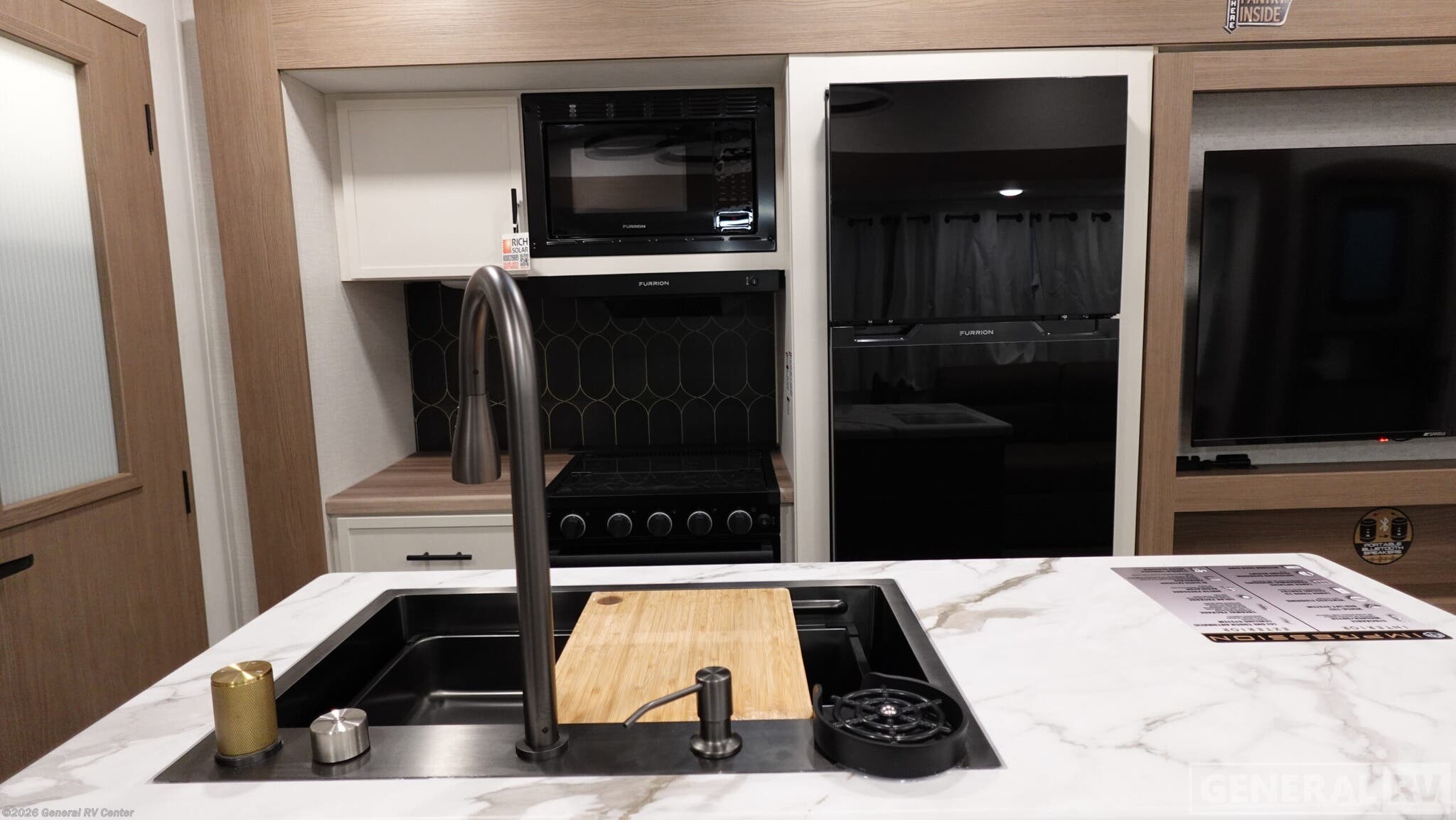 Discover the 2026 Forest River Impression 315MB, a haven of comfort and versatility designed for families and adventurers alike. This impressive fifth wheel offers a spacious layout that comfortably sleeps up to 11, featuring two queen beds, convertible sleeping spaces, and a cozy bunkhouse. The rear kitchen is a culinary delight, equipped with a full-size electric refrigerator and a three-burner cooktop, making meal prep a breeze. The center living area invites relaxation with a tri-fold sofa and an entertainment center, perfect for movie nights or unwinding after a day of exploration. Step into the thoughtfully designed interior, where the center bath provides convenience with a walk-in shower and skylight. The front and center bedrooms offer privacy and comfort, with the master suite boasting a queen bed with Versa Net technology. Outside, enjoy the 18-foot powered retractable awning and the outdoor kitchen, ideal for al fresco dining under the stars. With ample storage, including unobstructed pass-through storage, and a robust cargo capacity, this RV is ready to take on any adventure. Visit your nearest General RV dealership to experience the 2025 Forest River Impression 315MB in person.
