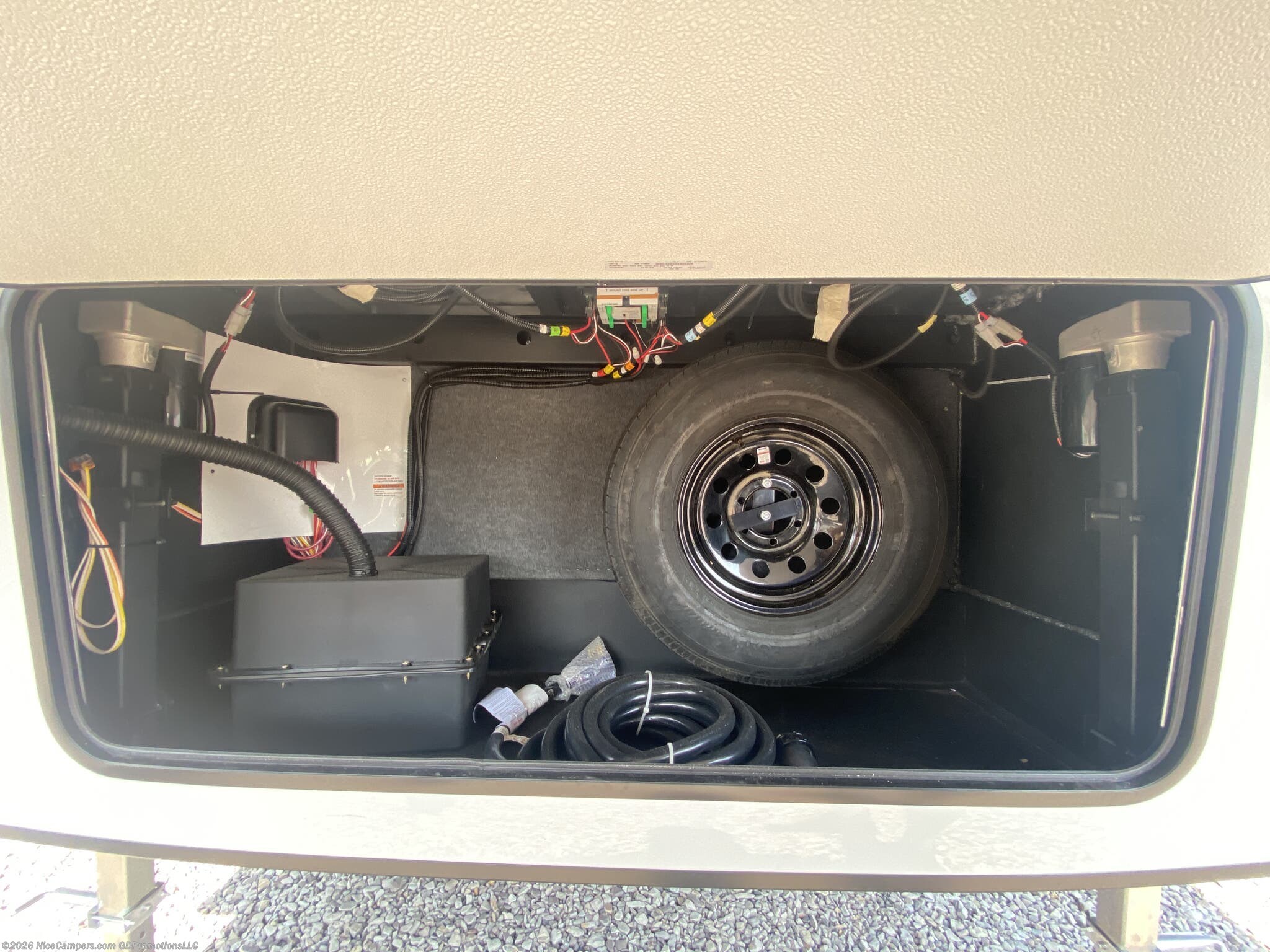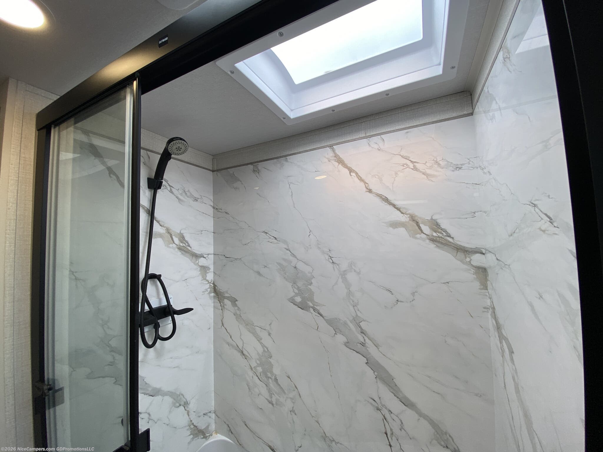 Awning, Exterior Speakers, External Shower, Hitch, Ladder, Leveling Jacks, Skylight, Slideout, Spare Tire Kit -