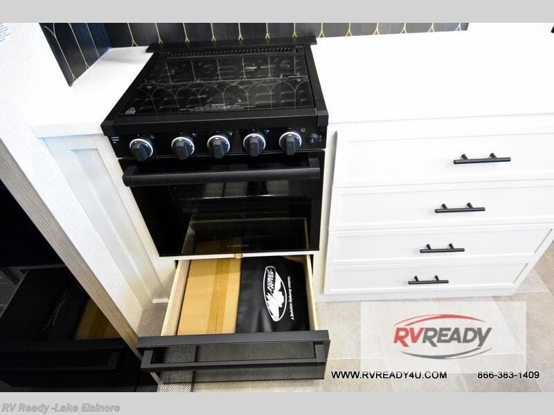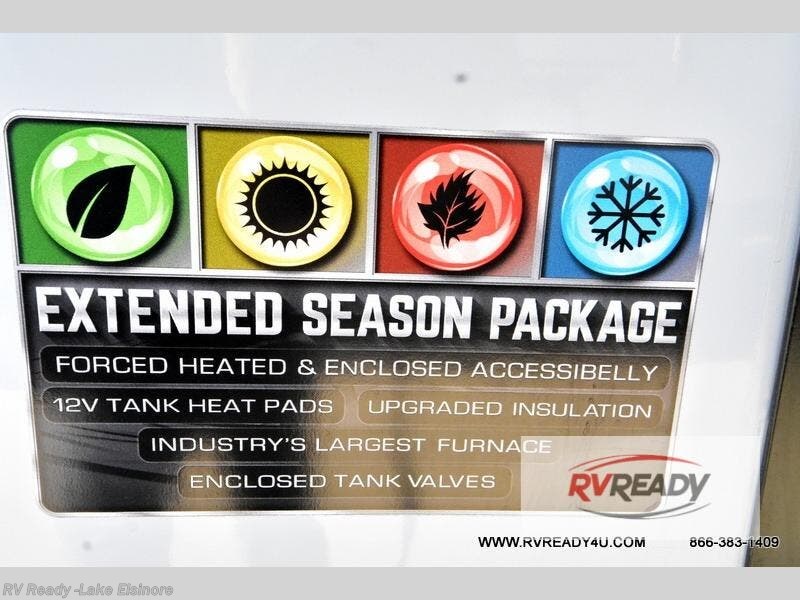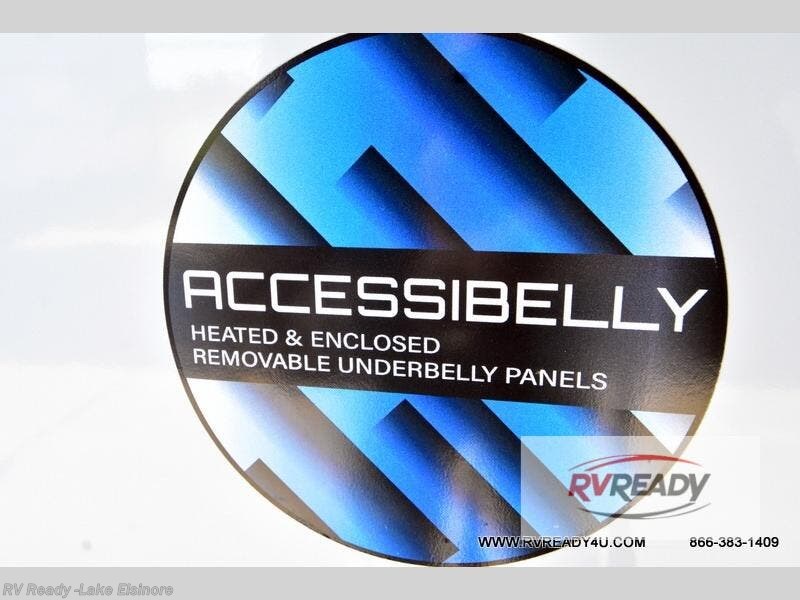 With any Impression fifth wheel by Forest River, the focus of the design is comfort and value, built with quality craftsmanship and attention to customer's desires in each Impression! The exterior includes upgraded E-rated tires, custom exterior graphics package, and insulated slam latch baggage doors. There is also an enclosed docking station, an outside shower, and a 100W roof panel for off-grid capabilities. The fully heated and enclosed AccessiBelly has removable underbelly panels along with enclosed tank valves. There is an industry leading 15K A/C plus 35K BTU furnace to keep you comfortable. The interior has lumbercore cabinetry, residential linoleum, residential backsplash in the kitchen, and oversized opening windows in the living area for more natural lighting and good air flow.