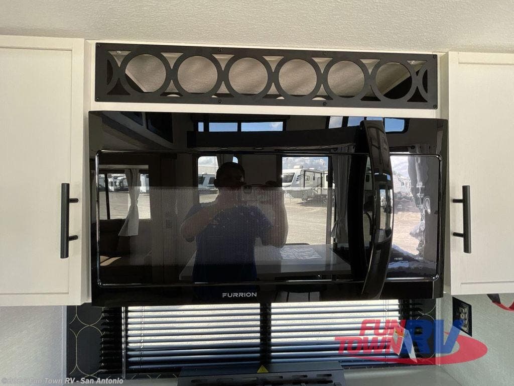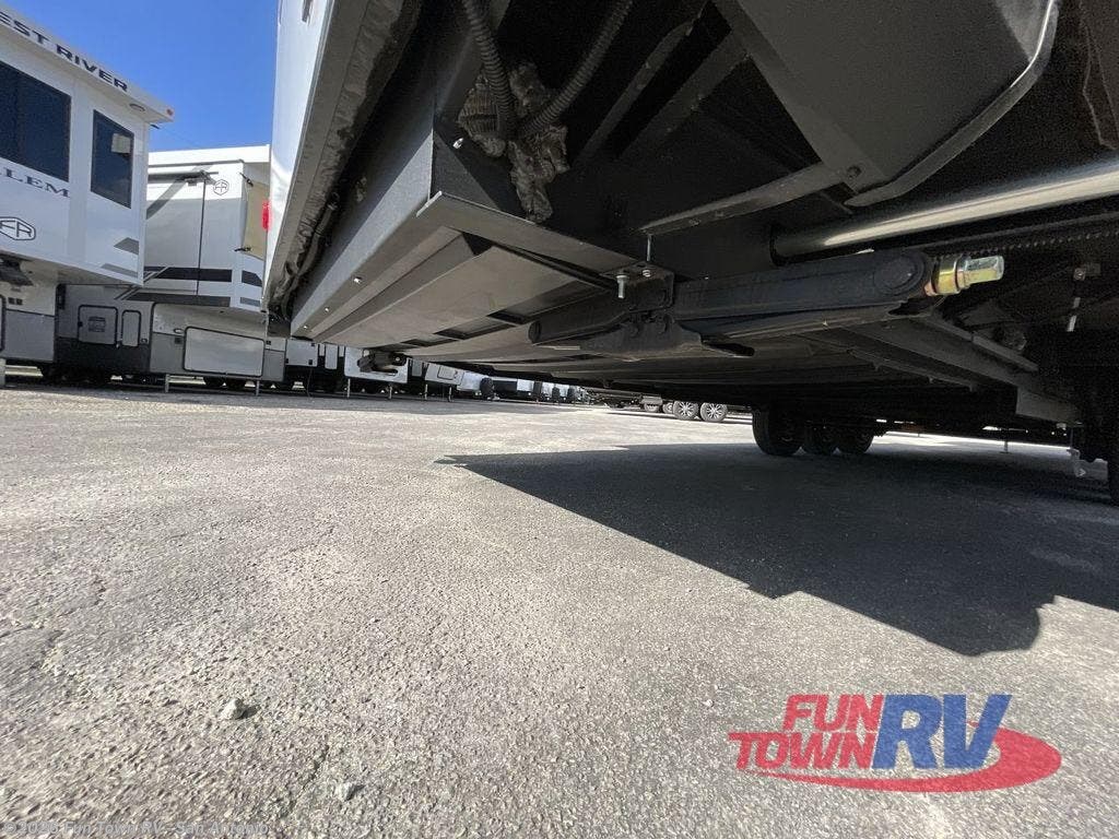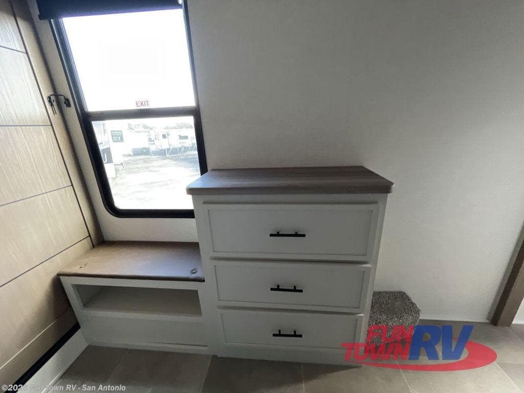 With any Impression mid-profile fifth wheel by Forest River, the focus of the design is comfort and value, built with quality craftsmanship and attention to customer's desires in each Impression! The exterior includes upgraded E-rated tires, custom exterior graphics package, and insulated slam latch baggage doors. There is also an enclosed docking station, an outside shower, and a 100W roof solar panel for off-grid capabilities. The fully heated and enclosed AccessiBelly has removable underbelly panels and offers four seasons of travel, and there is an industry leading 15K A/C plus 35K BTU furnace to keep you comfortable. The interior has lumbercore cabinetry, residential linoleum, residential backsplash in the kitchen, and oversized opening windows in the living area for more natural lighting and good air flow.
