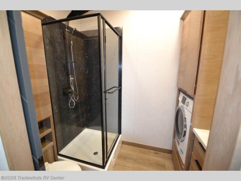 Luxury abounds in the Lost Pines destination trailer by Forest River. Each model features 3" hung wall construction, a rolled fiberglass roof, a thermofoil lined underbelly, and an Azdel gel coat fiberglass exterior wall for added durability. The full-body paint with 4x Clear Coat is sure to turn heads as you travel to your destination, and the LCI Road Armor suspension system will provide a smooth tow. You'll also find dual 40 lb. LP tanks outside, along with a heated full docking station, and MORryde entry steps and Safe-T-Rail. The interior of the Lost Pines is outfitted with luxury vinyl flooring, residential appliances, LED lighting throughout, plus upgraded solid surface countertops and backsplash!