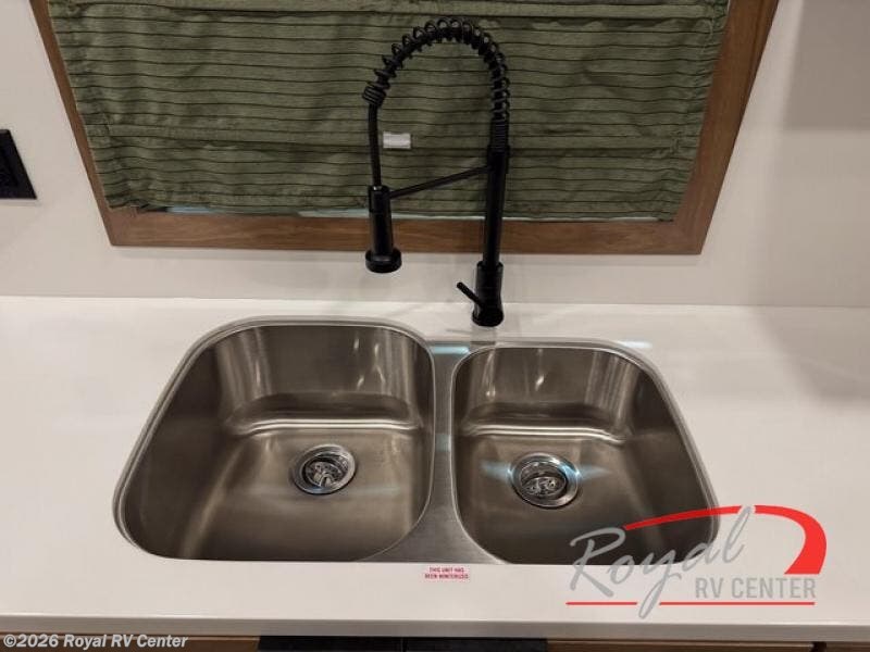 For those who appreciate a destination trailer easier to maintain, this slide-less unit will be perfect for you! Your crew can relax comfortably in the front living area that includes an L-shaped sleeper sofa across from an entertainment center or enjoy the views out the window in front of the countertop with chairs. The full kitchen will allow you to make your best home-cooked meals, and the spacious walk-through bath is easily accessible. You're sure to love the rear bedroom that includes a queen bed with a king bed option, along with dual bedroom closets to keep everything organized!