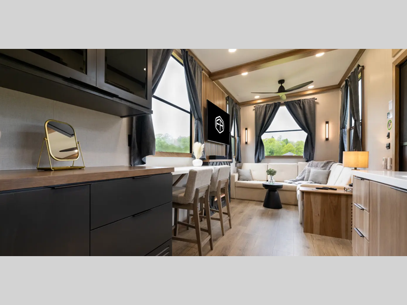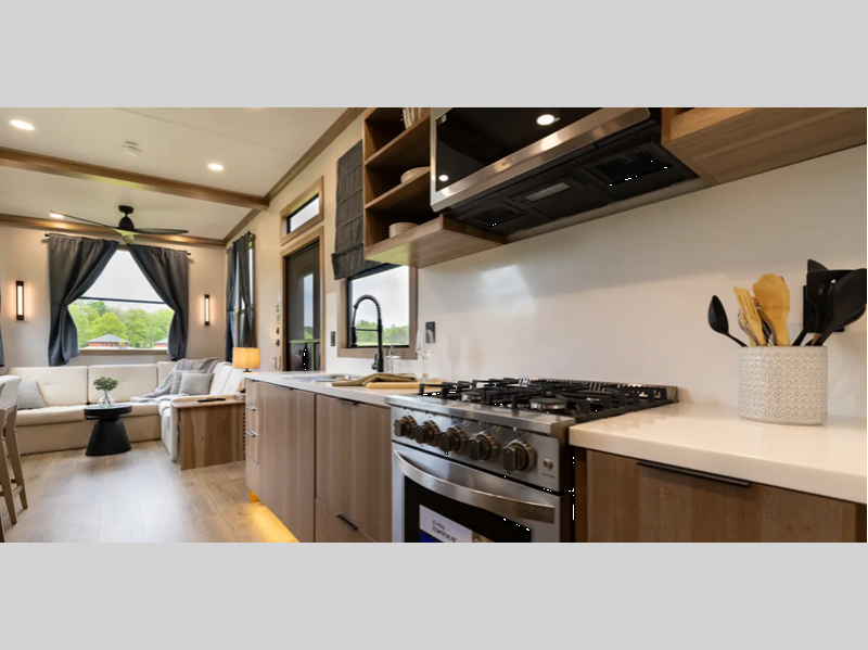 Luxury abounds in the Lost Pines destination trailer by Forest River. Each model features 3" hung wall construction, a rolled fiberglass roof, a thermofoil lined underbelly, and an Azdel gel coat fiberglass exterior wall for added durability. The full-body paint with 4x Clear Coat is sure to turn heads as you travel to your destination, and the LCI Road Armor suspension system will provide a smooth tow. You'll also find dual 40 lb. LP tanks outside, along with a heated full docking station, and MORryde entry steps and Safe-T-Rail. The interior of the Lost Pines is outfitted with luxury vinyl flooring, residential appliances, LED lighting throughout, plus upgraded solid surface countertops and backsplash!