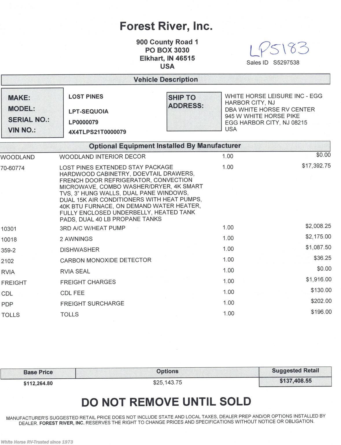 Request More Info on this 2026 Forest River Lost Pines SEQUOIA Offered for sale by White Horse RV Center