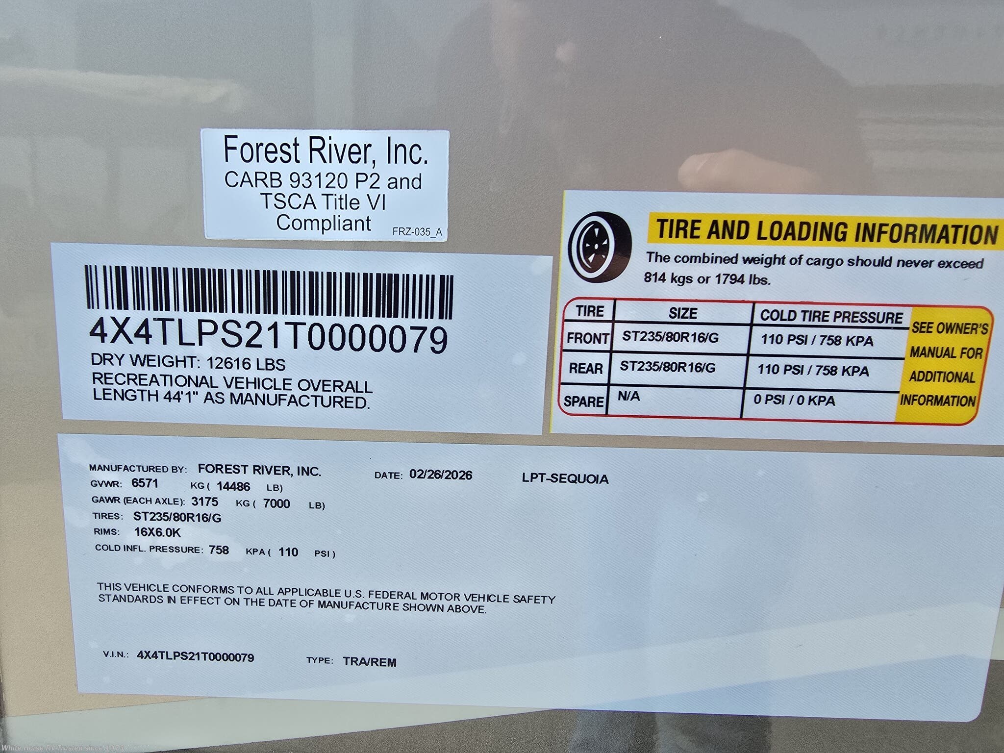 2026 Forest River Lost Pines SEQUOIA Specifications