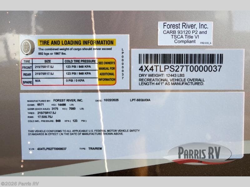 2026 Forest River Lost Pines SEQUOIA Specifications