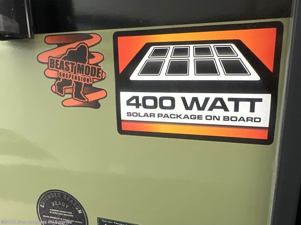 It will be so easy to enjoy camping trips in this No Boundaries travel trailer! The front master bedroom includes one of the dual entry doors so you can slip out early for a morning run without waking anyone else up. When you return, you can freshen up in the walk-thru bath, then head to the kitchen to make breakfast. There is also an outside kitchen so you can cook in the fresh mountain air. There is a booth dinette inside where you can dine at, play games, and even let a guest sleep over, and the tri-fold sofa slide provides more space and comfort! When the optional Beast Mode Package on this model is chosen, you'll enjoy a 400-watt solar package, a fresh water filter, a Maxxair roof vent cover, plus a Beast Mode independent suspension for better handling.