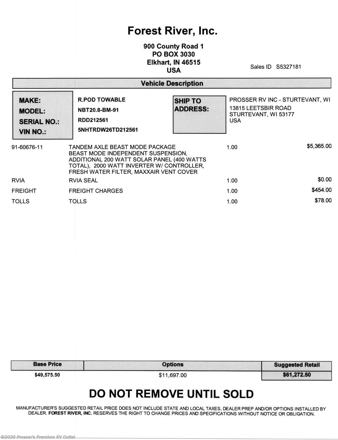Request More Info on this 2026 Forest River No Boundaries Beast Mode NB20.8 Offered for sale by Prosser's Premium RV Outlet