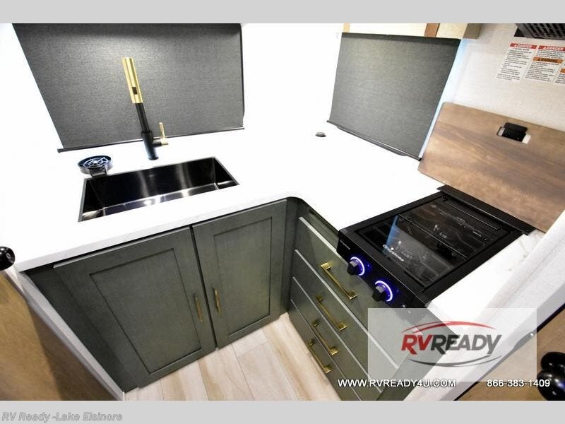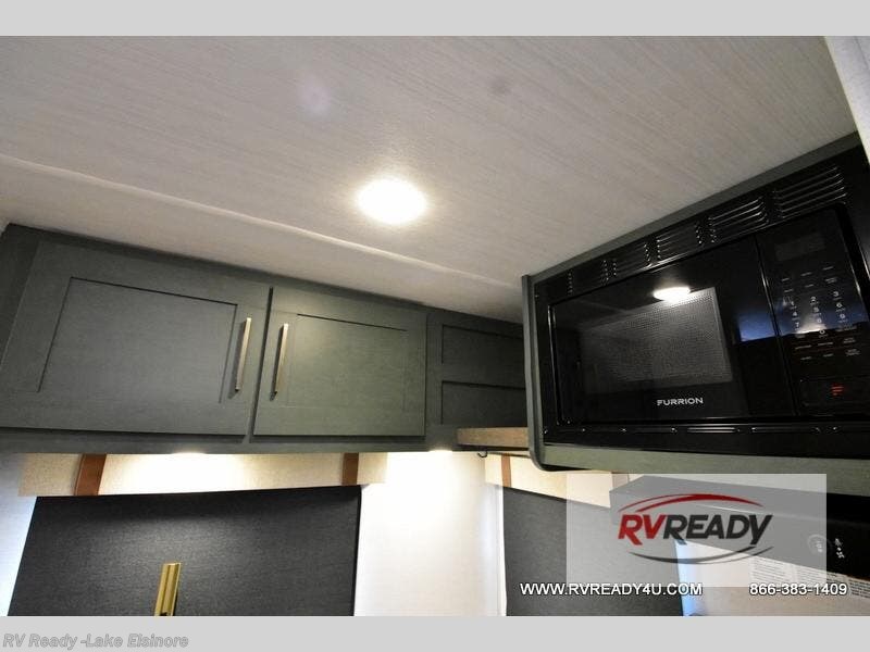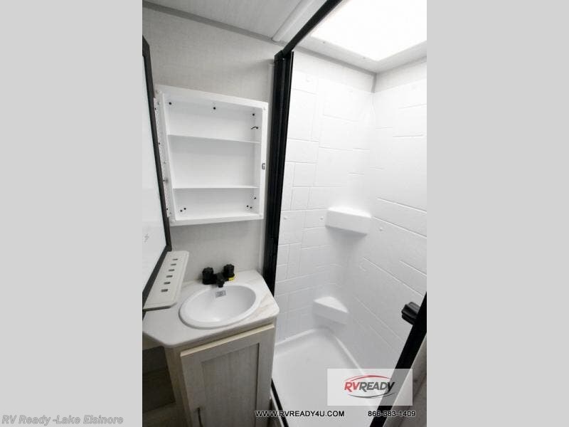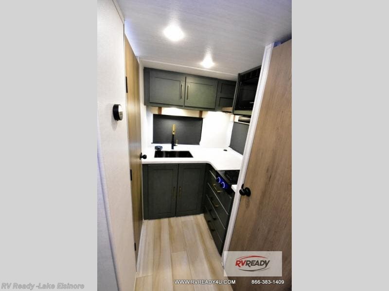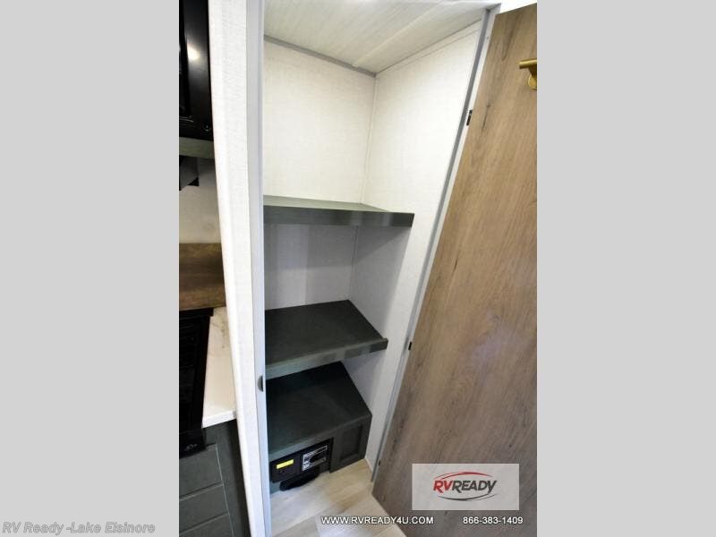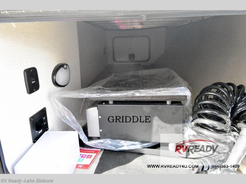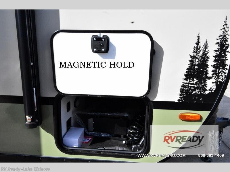 This easy to tow trailer is perfect for weekend trips to the lake! Once you're set up at camp, put out the patio awning, make lunch on the outside kitchen, and grab your camp chairs from the slam latch cargo doors with pass-thru lighting. A jackknife sofa inside will provide a place to relax in the evenings, and a full bath means you won't have to use the camp's facilities. The rear corner kitchen includes a microwave and cooktop, plus a pantry and refrigerator for food storage. When it's time to call it a night, the front queen bed is sure to bring comfort!