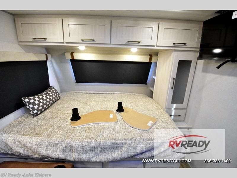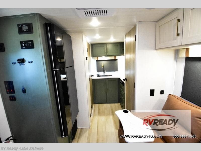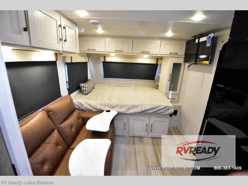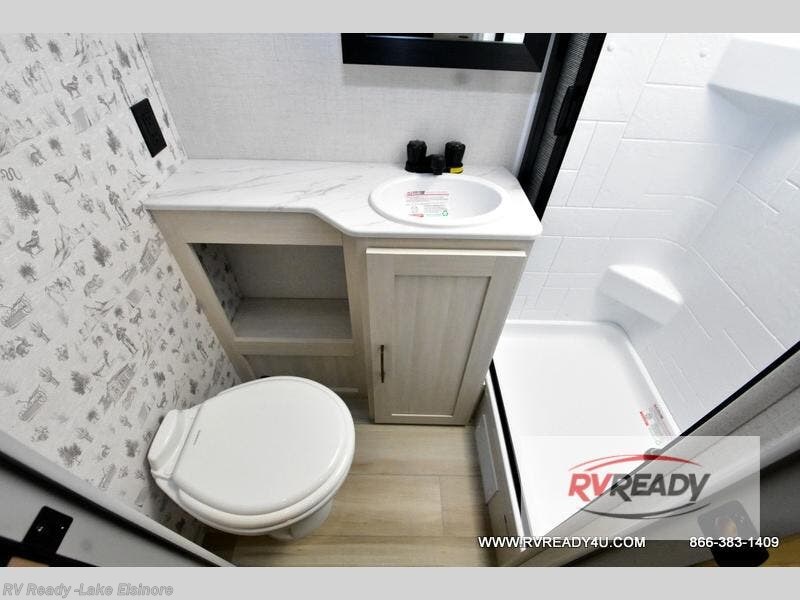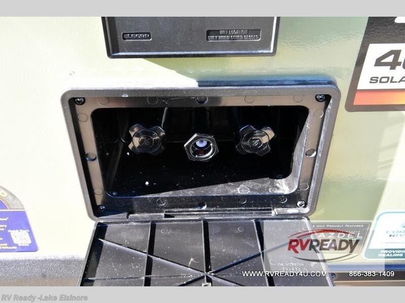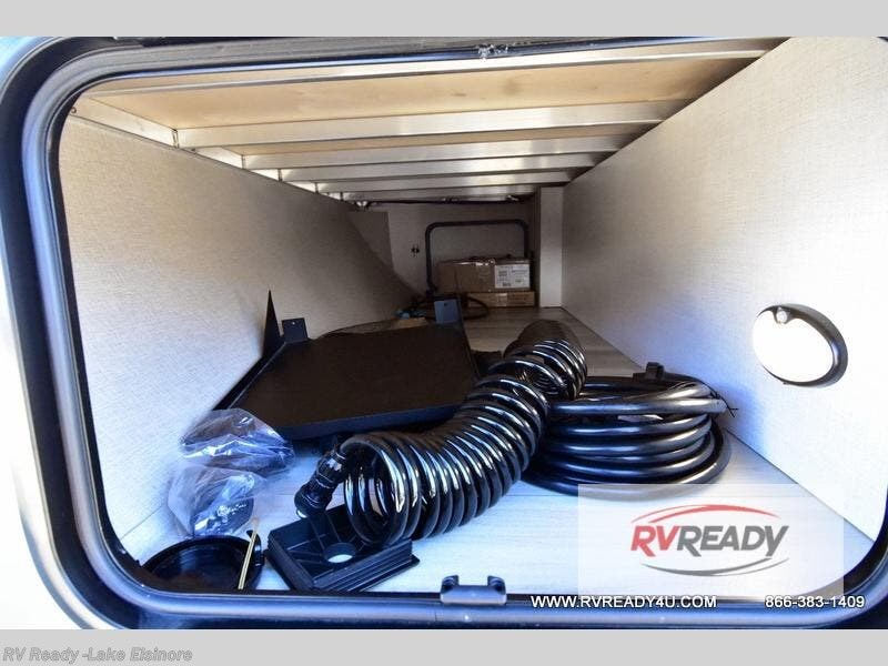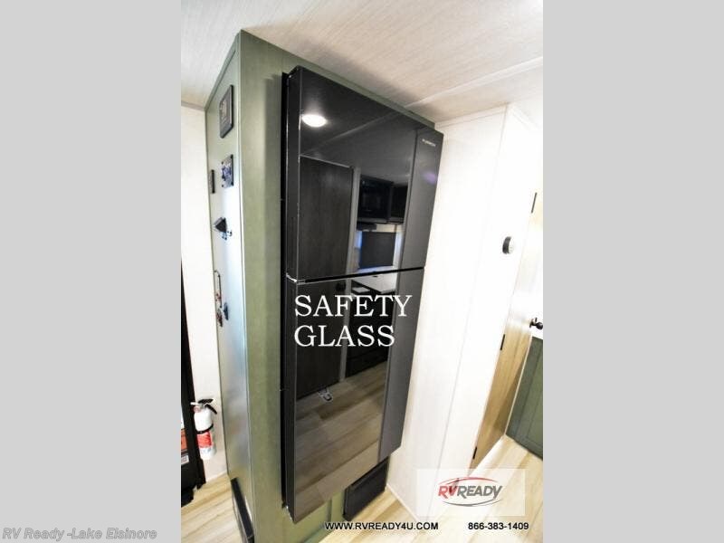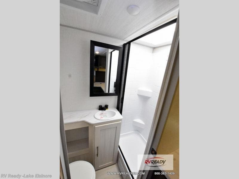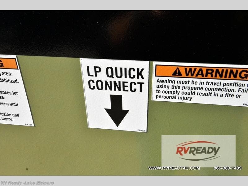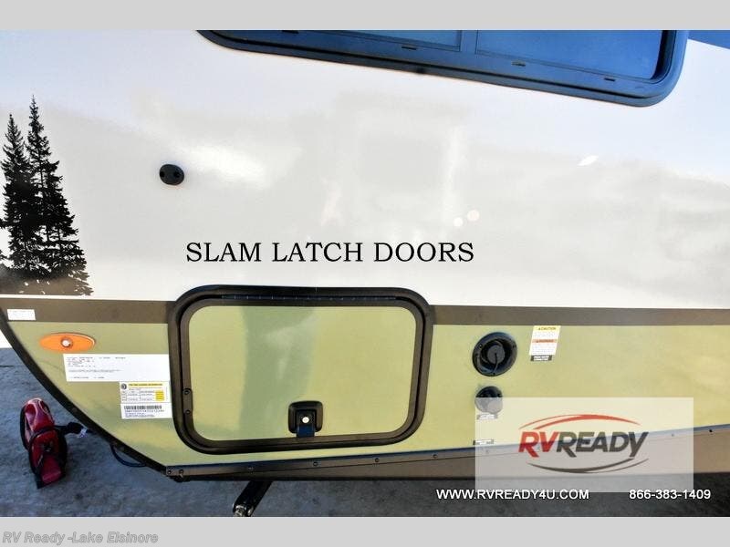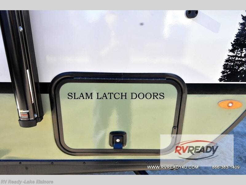 This easy to tow trailer is perfect for weekend trips to the lake! Once you're set up at camp, put out the patio awning, make lunch on the outside kitchen, and grab your camp chairs from the slam latch cargo doors with pass-thru lighting. A jackknife sofa inside will provide a place to relax in the evenings, and a full bath means you won't have to use the camp's facilities. The rear corner kitchen includes a microwave and cooktop, plus a pantry and refrigerator for food storage. When it's time to call it a night, the front queen bed is sure to bring comfort!