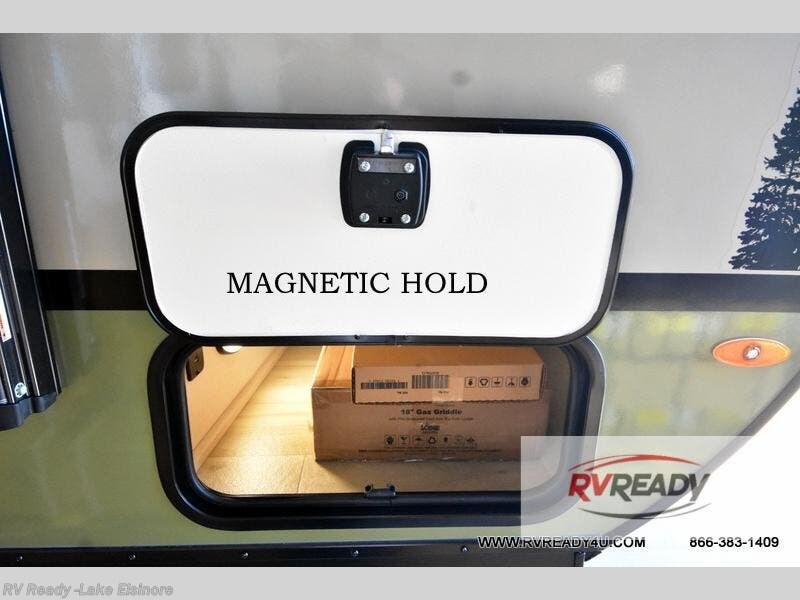This easy to tow trailer is perfect for weekend trips to the lake! Once you're set up at camp, put out the patio awning, make lunch on the outside kitchen, and grab your camp chairs from the slam latch cargo doors with pass-thru lighting. The kitchen includes a cooktop and microwave, plus a pantry and refrigerator for food storage. When it's time to call it a night, the front queen bed with a U-shaped dinette is sure to bring comfort! When the optional Beast Mode Package on this model is chosen, you'll enjoy a 400-watt solar package, a fresh water filter, a Maxxair roof vent cover, plus a Beast Mode independent suspension for better handling.