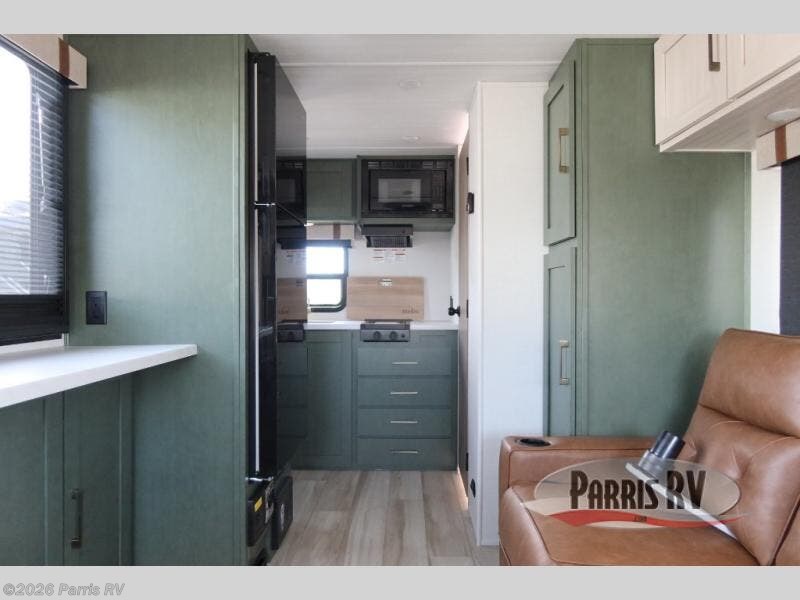 This easy to tow trailer is perfect for weekend trips to the lake! Once you're set up at camp, put out the patio awning, make lunch on the outside kitchen, and grab your camp chairs from the slam latch cargo doors with pass-thru lighting. A jackknife sofa inside will provide a place to relax in the evenings, and a full bath means you won't have to use the camp's facilities. There is also a bar top with two seats and a flip-up window where you can enjoy your morning coffee at! The rear corner kitchen includes microwave and cooktop plus a pantry and refrigerator for food storage. When it's time to call it a night, the front queen bed is sure to bring comfort! When the optional Beast Mode Package on this model is chosen, you'll enjoy a 400-watt solar package, a fresh water filter, a Maxxair roof vent cover, plus a Beast Mode independent suspension for better handling.