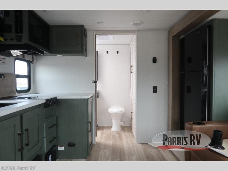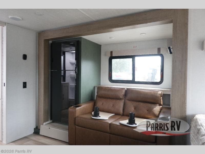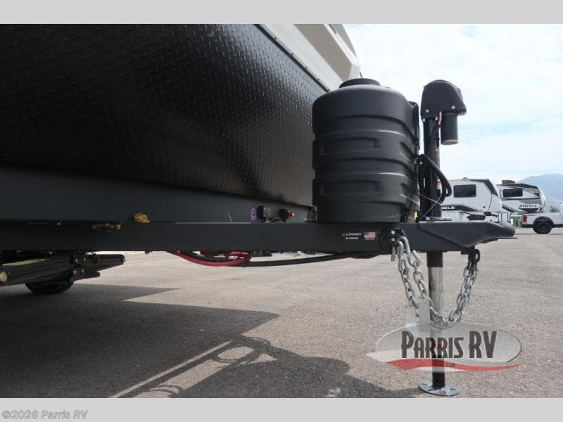 This spacious trailer is perfect for weekend trips to the lake! Once you're set up at camp, put out the patio awning, make lunch on the outside kitchen, and grab your camp chairs from the slam latch cargo doors with pass-thru lighting. A jackknife sofa slide inside will provide more space and a place to relax in the evenings, and a full bath means you won't have to use the camp's facilities. The kitchen includes a cooktop and microwave, plus a refrigerator and overhead cabinets for food storage. When it's time to call it a night, the front queen bed is sure to bring comfort! When the optional Beast Mode Package is chosen with this model, you'll find a Beast Mode independent suspension, an additional 200-watt solar panel, a fresh water filter and more!