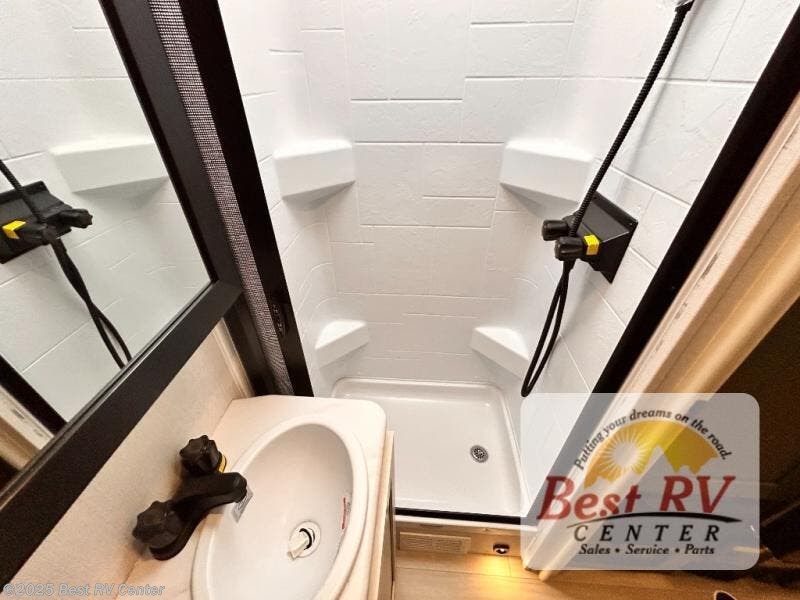 - REFER, UPGRADED SLOW CLOSE SHOWER DOOR (SELECT MODELS), SURF(X)® SEAMLESS C'TOPS, AIR FRYER MICRO, UPGRADED DINETTE PEDESTAL LEG, LARGE KIT. SINK W/CUP WASHER, BLUE TOOTH AUDIO W/MARINE GRADE SPEAKERS, SOLID ENTRY STEP(S), OUTDOOR KITCHEN, TANKLESS WATER HEATER, HOT & COLD EXT. SPAY PORT, PWR TONGUE JACK,