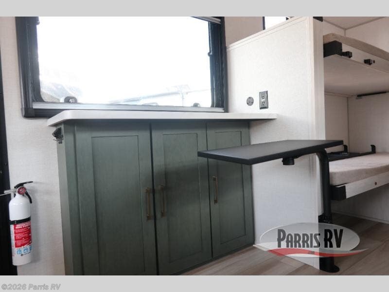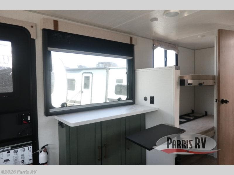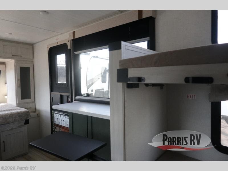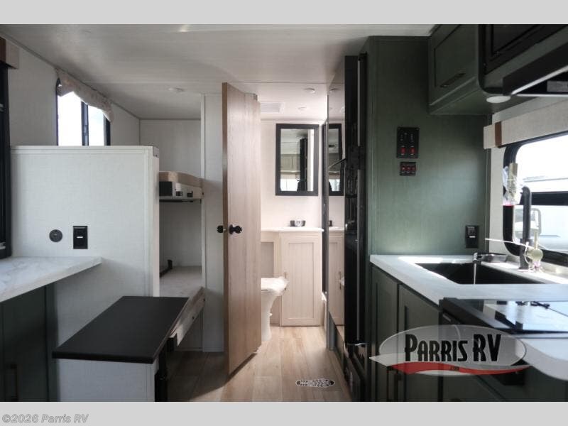 There is much to love about this travel trailer! Starting with the front queen bed to lay your head on at night and the set of 30" x 74" bunk beds for two sleepy travelers. Prepare your best home cooked meals in the fully equipped kitchen then enjoy them at the two chairs with table by the flip-up window. You could even prepare your meals in the great outdoors with the outside kitchen. The full bathroom has everything you need to freshen up after a fun day at the beach. Store all of your outdoor gear in the pass-through storage area with slam latch cargo doors with pass-through lighting too. When the optional Beast Mode Package on this model is chosen, you'll enjoy a 400-watt solar package, a fresh water filter, a Maxxair roof vent cover, plus a Beast Mode independent suspension for better handling.