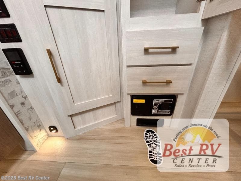 - EXTENDED SEASON READY - (ALUMINUM FRAMED FLOOR W/BLOCK FOAM INSULATION, SEALED UNDERBELLY W/FORCED HEAT & RADIANT FOIL BARRIER, 12V TANK HEATERS), FIBERGLASS FRONT CAP W/ LED LIGHTING, ALL TERRAIN TIRES W/ TPMS, 200W SOLAR PANEL & 30 AMP CONTROLLER, SOLAR INVERTER PREP, 15K BTU A/C, CENTRAL VAC SYSTEM W/HOSE KIT, 12V REFER, UPGRADED SLOW CLOSE SHOWER DOOR (SELECT MODELS), SURF(X)® SEAMLESS C’TOPS, AIR FRYER MICRO, UPGRADED DINETTE PEDESTAL LEG, LARGE KIT. SINK W/ CUP WASHER, BLUE TOOTH AUDIO W/MARINE GRADE SPEAKERS, SOLID ENTRY STEP(S), OUTDOOR KITCHEN, TANKLESS WATER HEATER, HOT & COLD EXT. SPAY PORT, PWR TONGUE JACK, SLAM LATCH BAGGAGE DOORS, ELEC AWNING W/LED LIGHT STRIP, BLACK GLASS FRICTION HINGE ENTRY DOOR(S), ROOF LADDER PREP, REAR CAMERA PREP, BATTERY DISCONNECT, INT & EXT MOTION LIGHTS, INT & EXT USB C-PORTS, 2" REAR ACCESSORY HITCH, SUPERIOR LAMINATED CONSTRUCTION FEATURING AZDEL COMPOSITE PANELS