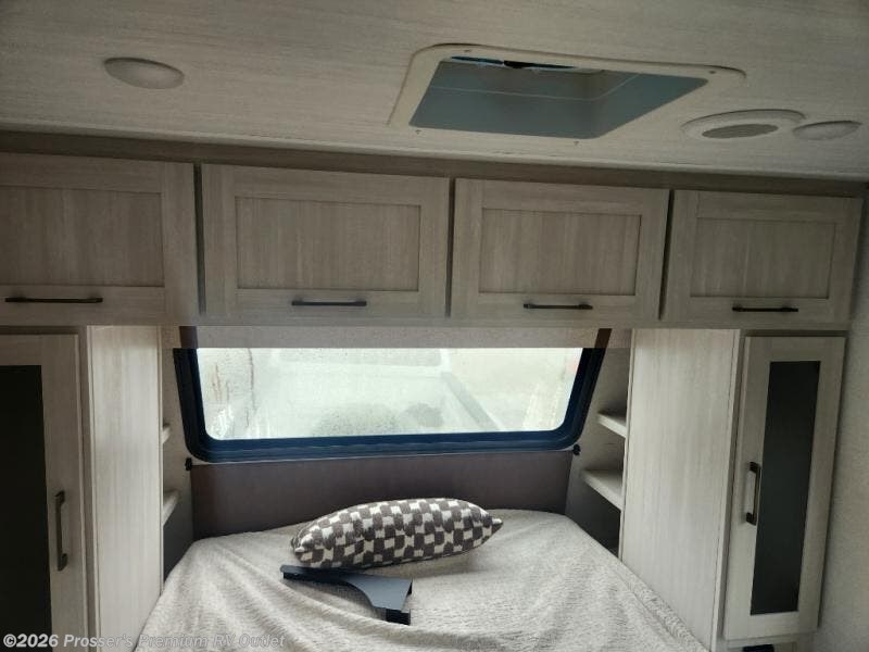 You'll love camping in this couple's trailer! There is a queen bed in the front bedroom, along with dual bedside wardrobes and overhead storage for clothes, books and more. And don't overlook the spacious walk-thru bath! Once you've made breakfast in the rear kitchen or on the outside kitchen, you can dine at the bar top with chairs and a flip-up window. There is also a Trailgate Outdoor Bar if you decide to dine outdoors!