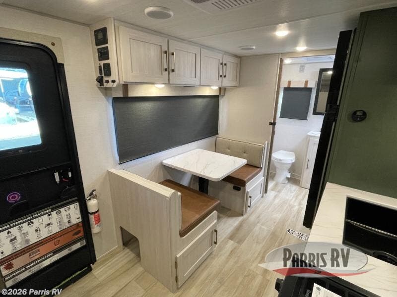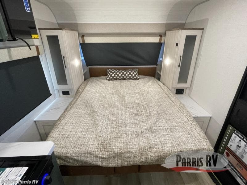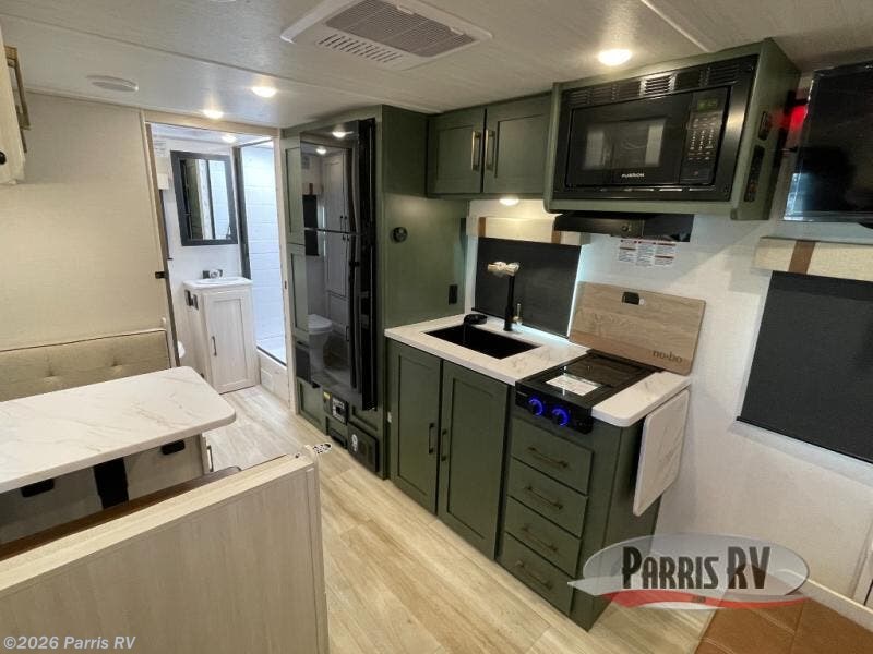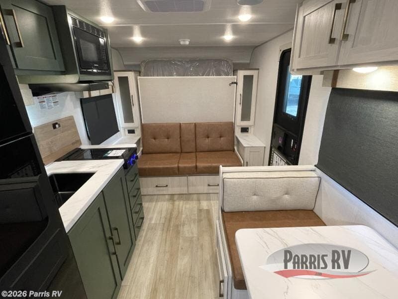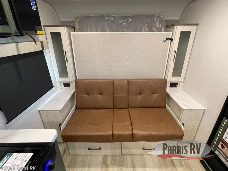 Take this No Boundaries travel trailer out for a no-stress weekend! You'll have a rear bathroom complete with a shower, toilet, vanity, and linen closet, and the kitchen comes with a pantry, microwave and air fryer plus a sink to help you stay on top of the daily meals. A booth dinette will provide a place to dine and play games in the evening, and an overnight guest can make their bed here. Up front, the Murphy bed can be set up for a great night's rest, and there are dual bedside wardrobes to keep your things tidy. When the optional Beast Mode Package on this model is chosen, you'll enjoy a 400-watt solar package, a fresh water filter, a Maxxair roof vent cover, plus a Beast Mode independent suspension for better handling.