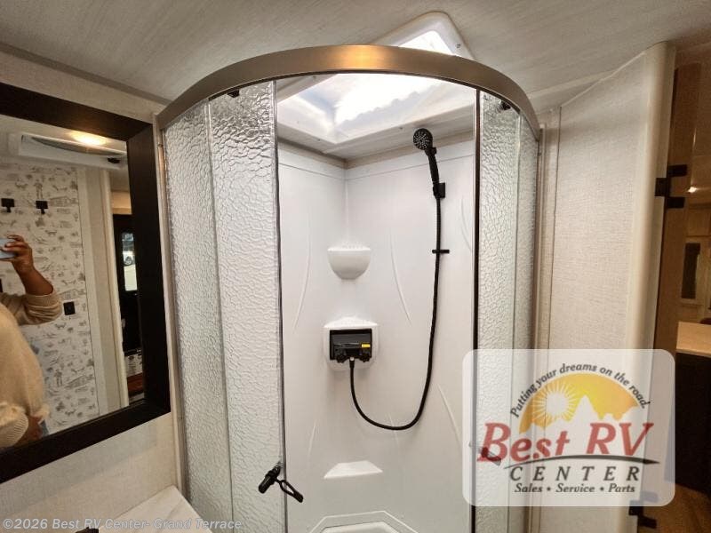 - WILED LIGHT STRIP, BLACK GLASS FRICTION HINGE ENTRY DOOR(S), ROOF LADDER PREP, REAR CAMERA PREP, BATTERY DISCONNECT, INT & EXT MOTION LIGHTS, INT & EXT USB C-PORTS, 2" REAR ACCESSORY HITCH, SUPERIOR