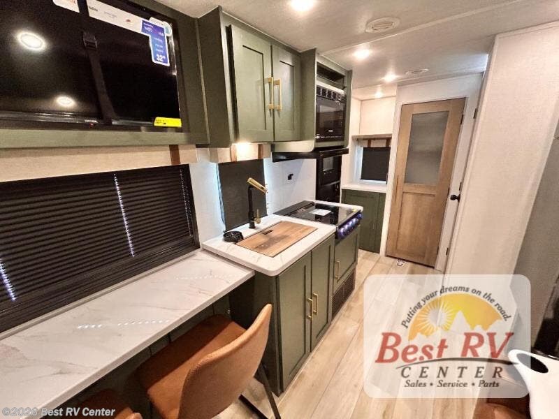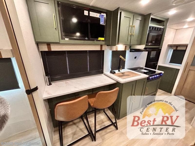 - EXTENDED SEASON READY - (ALUMINUM FRAMED FLOOR W/BLOCK FOAM INSULATION, SEALED UNDERBELLY W/FORCED HEAT & RADIANT FOIL BARRIER, 12V TANK HEATERS), FIBERGLASS FRONT CAP W/ LED LIGHTING, ALL TERRAIN TIRES W/ TPMS, 200W SOLAR PANEL & 30 AMP CONTROLLER, SOLAR INVERTER PREP, 15K BTU A/C, CENTRAL VAC SYSTEM W/HOSE KIT, 12V REFER, UPGRADED SLOW CLOSE SHOWER DOOR (SELECT MODELS), SURF(X)® SEAMLESS C’TOPS, AIR FRYER MICRO, UPGRADED DINETTE PEDESTAL LEG, LARGE KIT. SINK W/CUP WASHER, BLUE TOOTH AUDIO W/MARINE GRADE SPEAKERS, SOLID ENTRY STEP(S), OUTDOOR KITCHEN, TANKLESS WATER HEATER, HOT & COLD EXT. SPAY PORT, PWR TONGUE JACK, SLAM LATCH BAGGAGE DOORS, ELEC AWNING W/LED LIGHT STRIP, BLACK GLASS FRICTION HINGE ENTRY DOOR(S), ROOF LADDER PREP, REAR CAMERA PREP, BATTERY DISCONNECT, INT & EXT MOTION LIGHTS, INT & EXT USB CPORTS, 2" REAR ACCESSORY HITCH, SUPERIOR LAMINATED CONSTRUCTION FEATURING AZDEL COMPOSITE PANELS