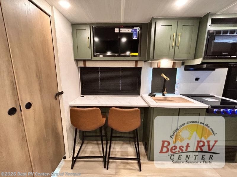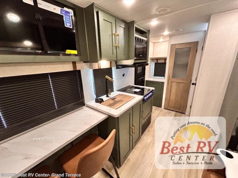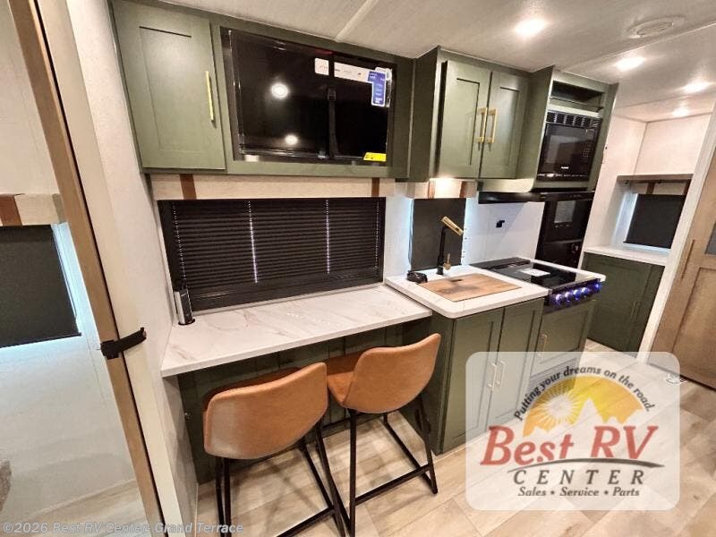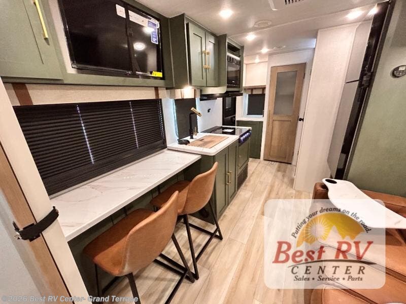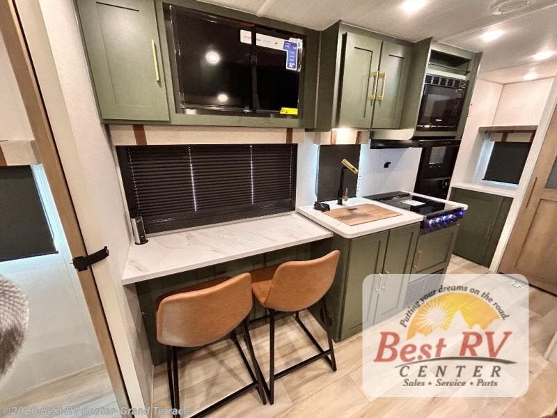 - EXTENDED SEASON READY - (ALUMINUM FRAMED FLOOR W/BLOCK FOAM INSULATION, SEALED UNDERBELLY W/FORCED HEAT & RADIANT FOIL BARRIER, 12V TANK HEATERS), FIBERGLASS FRONT CAP W/ LED LIGHTING, ALL TERRAIN TIRES W/ TPMS, 200W SOLAR PANEL & 30 AMP CONTROLLER, SOLAR INVERTER PREP, 15K BTU A/C, CENTRAL VAC SYSTEM W/HOSE KIT, 12V REFER, UPGRADED SLOW CLOSE SHOWER DOOR (SELECT MODELS), SURF(X)® SEAMLESS C’TOPS, AIR FRYER MICRO, UPGRADED DINETTE PEDESTAL LEG, LARGE KIT. SINK W/CUP WASHER, BLUE TOOTH AUDIO W/MARINE GRADE SPEAKERS, SOLID ENTRY STEP(S), OUTDOOR KITCHEN, TANKLESS WATER HEATER, HOT & COLD EXT. SPAY PORT, PWR TONGUE JACK, SLAM LATCH BAGGAGE DOORS, ELEC AWNING W/LED LIGHT STRIP, BLACK GLASS FRICTION HINGE ENTRY DOOR(S), ROOF LADDER PREP, REAR CAMERA PREP, BATTERY DISCONNECT, INT & EXT MOTION LIGHTS, INT & EXT USB CPORTS, 2" REAR ACCESSORY HITCH, SUPERIOR LAMINATED CONSTRUCTION FEATURING AZDEL COMPOSITE PANELS