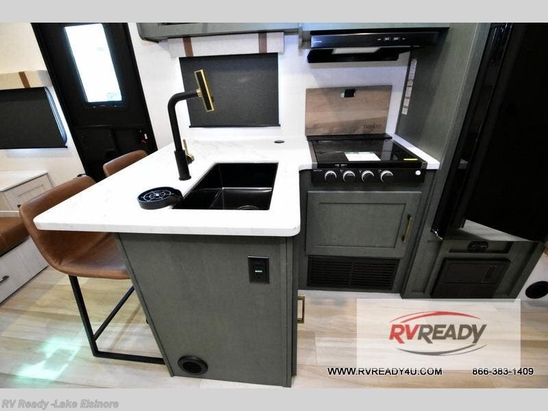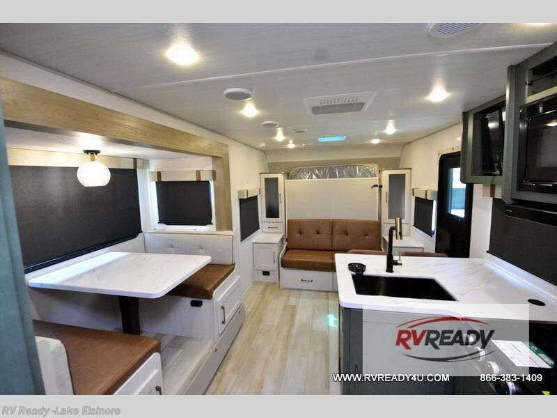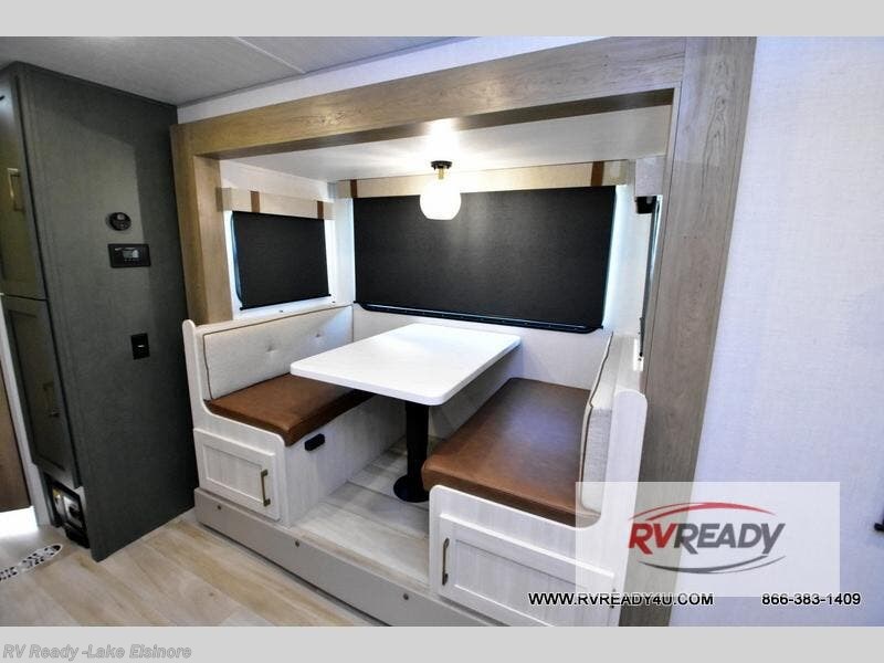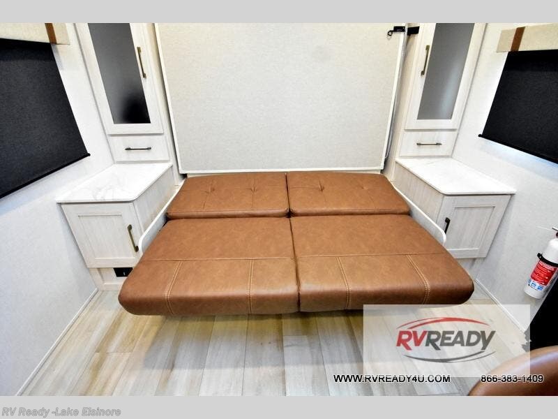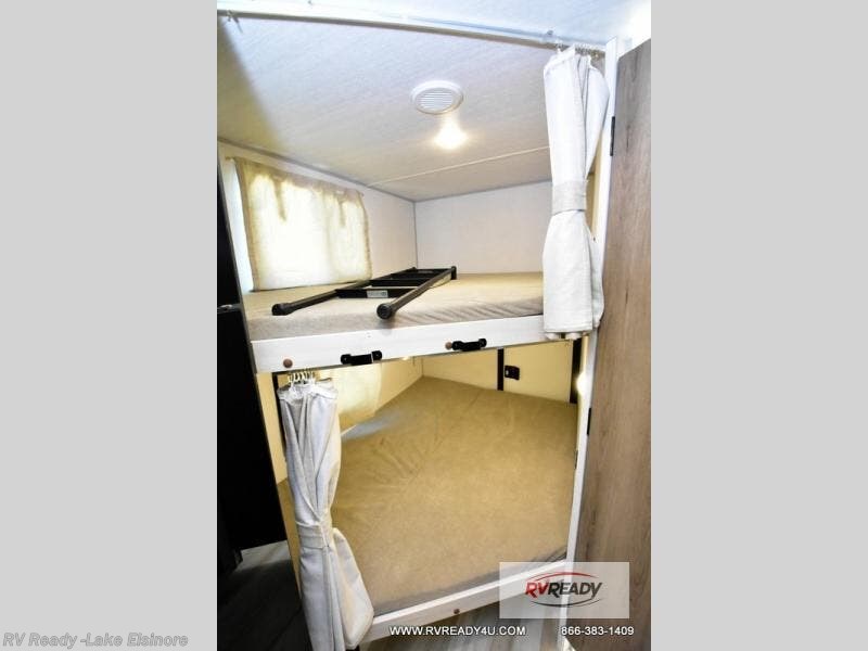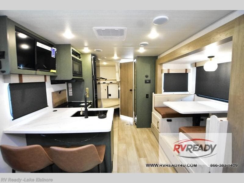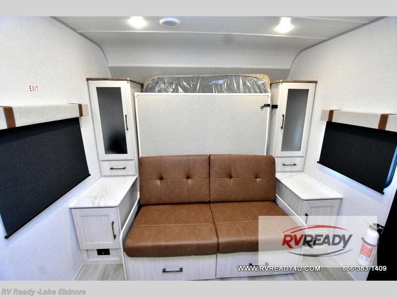 Pack up this very versatile Murphy bed travel trailer and head out to explore! You will love the space saving aspect that a Murphy bed gives you by not increasing the tow length in order to give you a separate bedroom and living space, and you don't even have to make the bed, just fold it up into the wall in the morning! Double-size bunks in the rear corner are perfect for accommodating both children and adults. The kitchen offers everything a cook would need to feed the whole gang and there is even a counter bar area with two stools which will be perfect for breakfast time. There is a booth dinette slide for more dining space, or a place to enjoy a board game or card game when you are inside. When the optional Beast Mode Package on this model is chosen, you'll enjoy a 400-watt solar package, a fresh water filter, a Maxxair roof vent cover, plus a Beast Mode independent suspension for better handling.