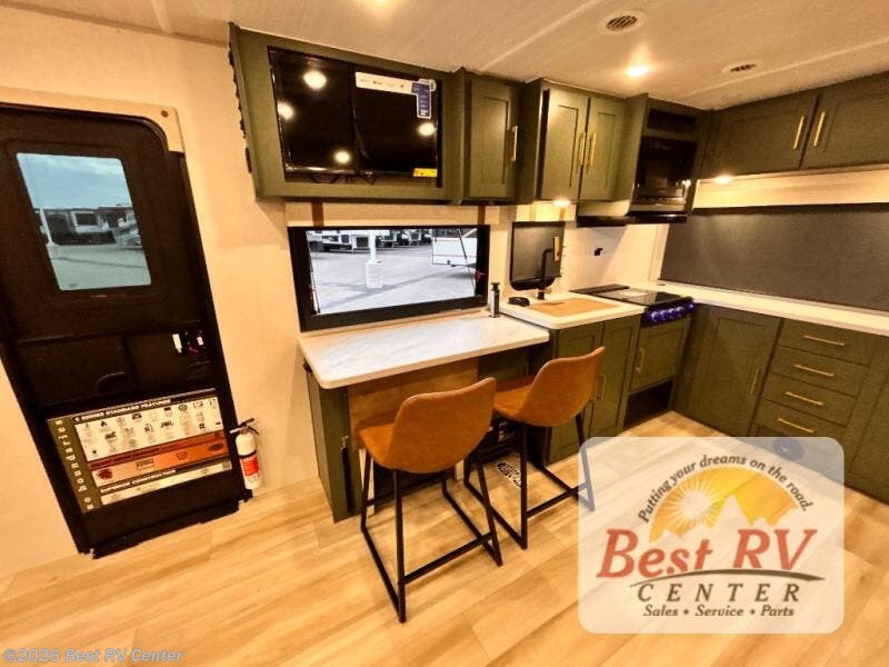 - EXTENDED SEASON READY - (ALUMINUM FRAMED FLOOR W/BLOCK FOAM INSULATION, SEALED UNDERBELLY W/FORCED HEAT & RADIANT FOIL BARRIER, 12V TANK HEATERS), FIBERGLASS FRONT CAP W/ LED LIGHTING, ALL TERRAIN TIRES W/ TPMS, 200W SOLAR PANEL & 30 AMP CONTROLLER, SOLAR INVERTER PREP, 15K BTU A/C, CENTRAL VAC SYSTEM W/HOSE KIT, 12V REFER, UPGRADED SLOW CLOSE SHOWER DOOR (SELECT MODELS), SURF(X)® SEAMLESS C’TOPS, AIR FRYER MICRO, UPGRADED DINETTE PEDESTAL LEG, LARGE KIT. SINK W/ CUP WASHER, BLUE TOOTH AUDIO W/MARINE GRADE SPEAKERS, SOLID ENTRY STEP(S), OUTDOOR KITCHEN, TANKLESS WATER HEATER, HOT & COLD EXT. SPAY PORT, PWR TONGUE JACK, SLAM LATCH BAGGAGE DOORS, ELEC AWNING W/LED LIGHT STRIP, BLACK GLASS FRICTION HINGE ENTRY DOOR(S), ROOF LADDER PREP, REAR CAMERA PREP, BATTERY DISCONNECT, INT & EXT MOTION LIGHTS, INT & EXT USB C-PORTS, 2" REAR ACCESSORY HITCH, SUPERIOR LAMINATED CONSTRUCTION FEATURING AZDEL COMPOSITE PANELS